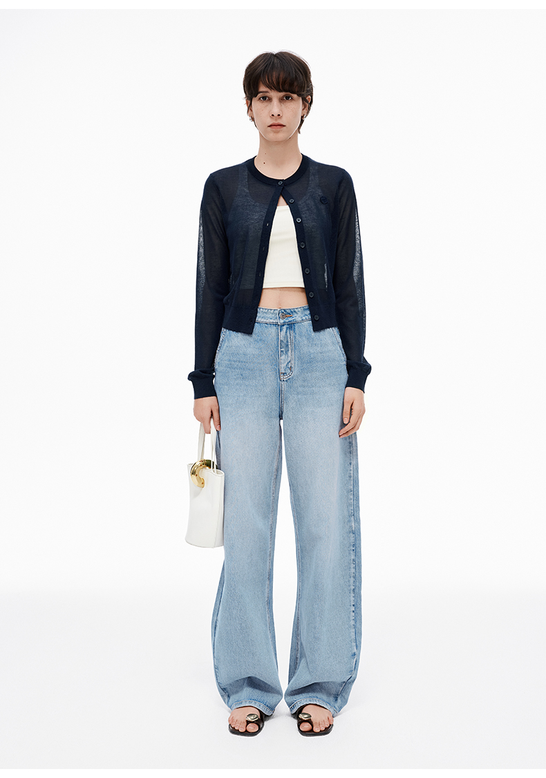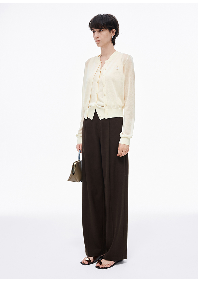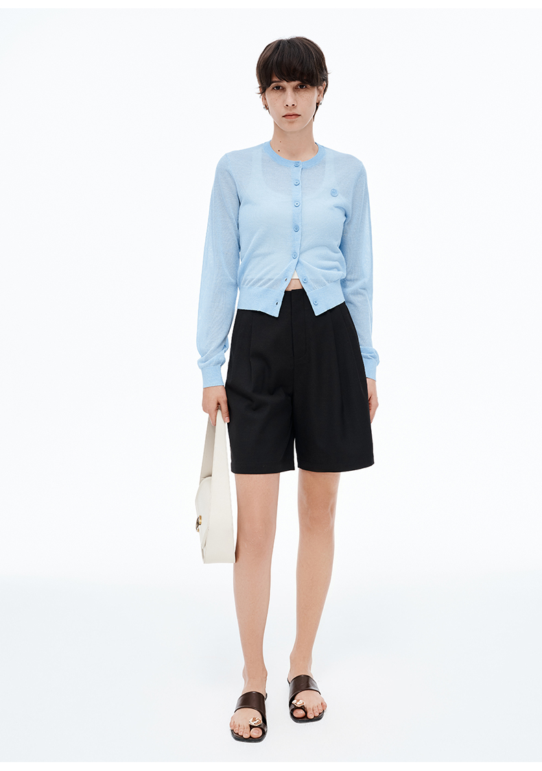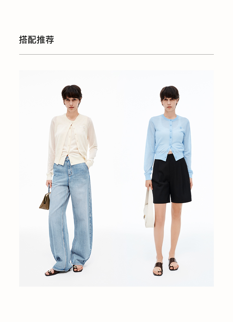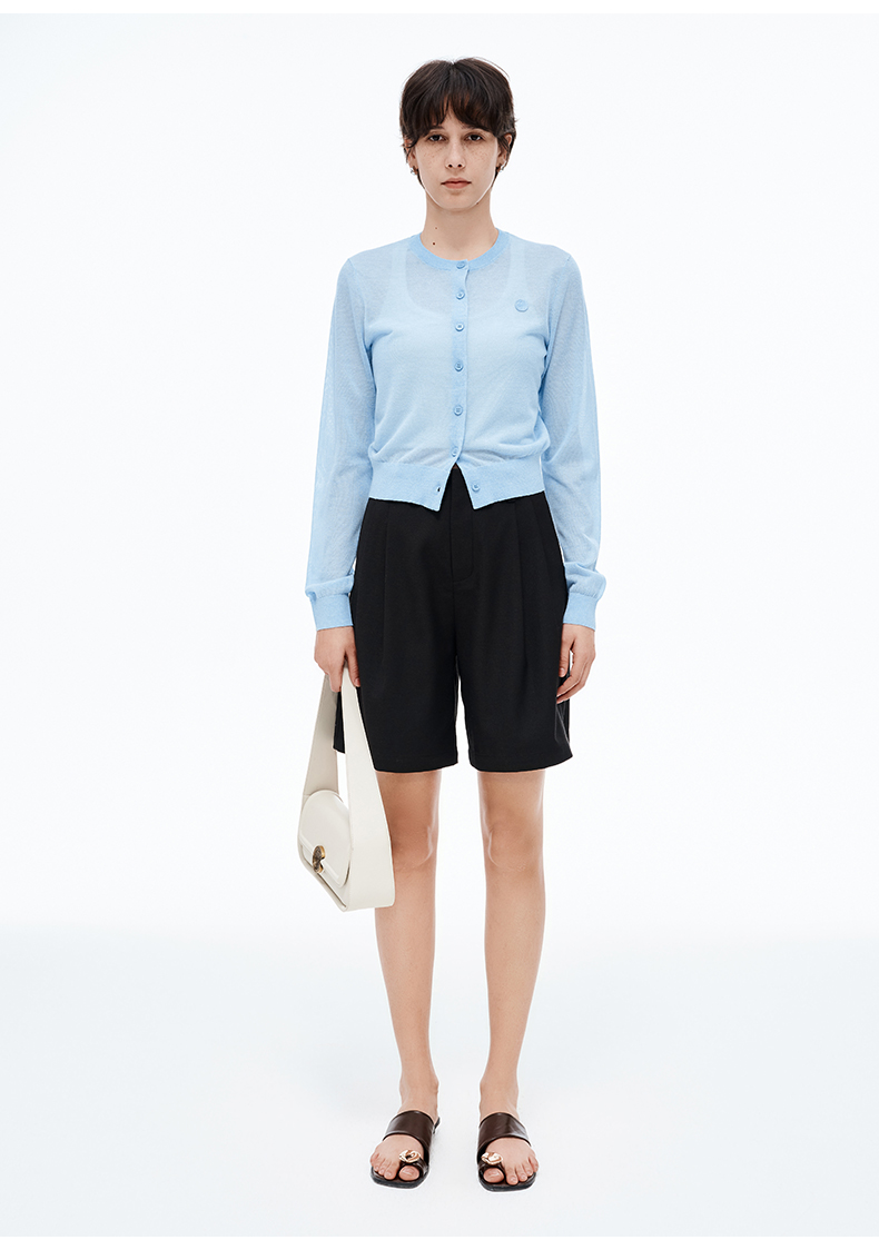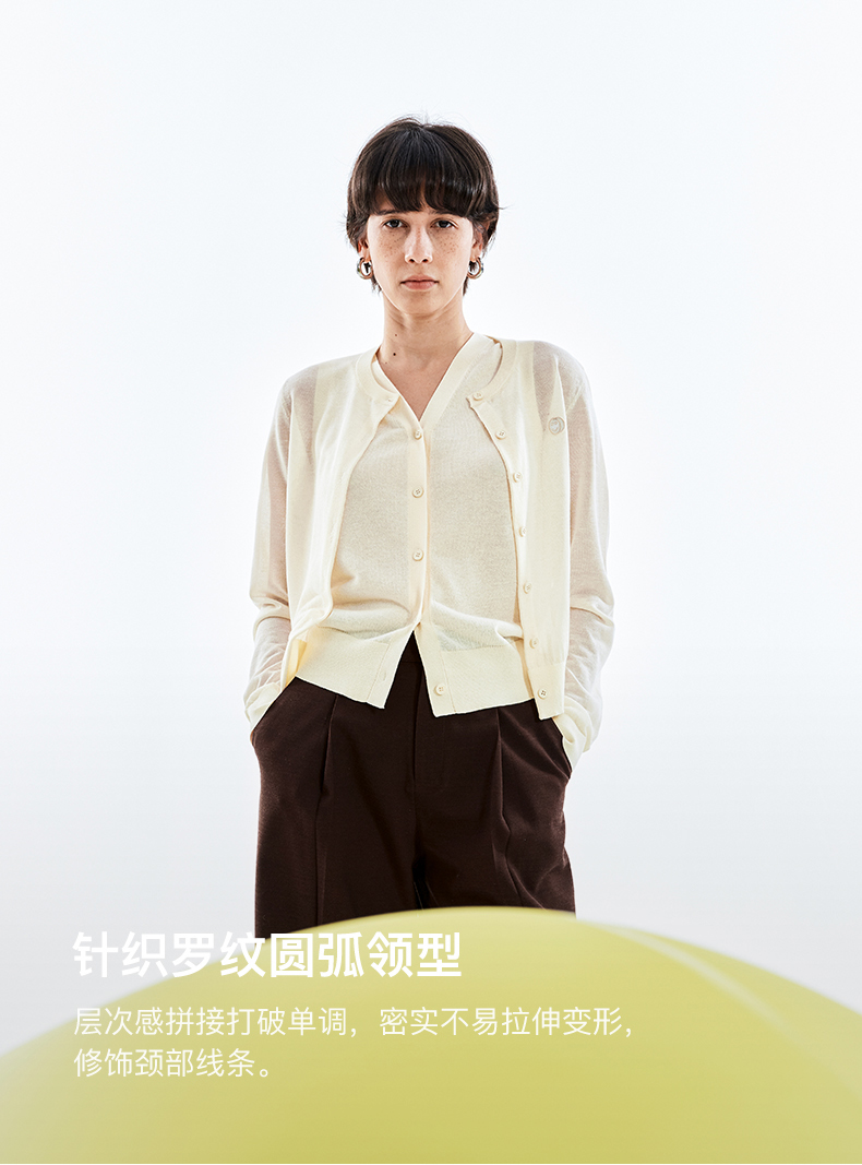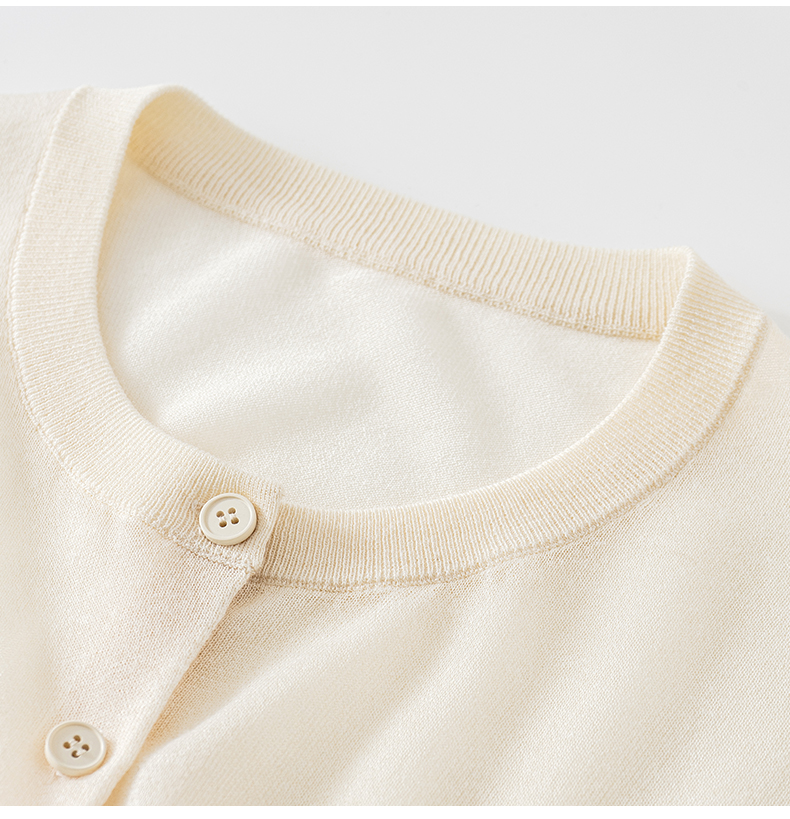 【笑脸衣橱】SELFWHO亚麻混纺圆弧领针织开衫女2025夏薄款透气纸片人毛衣外套