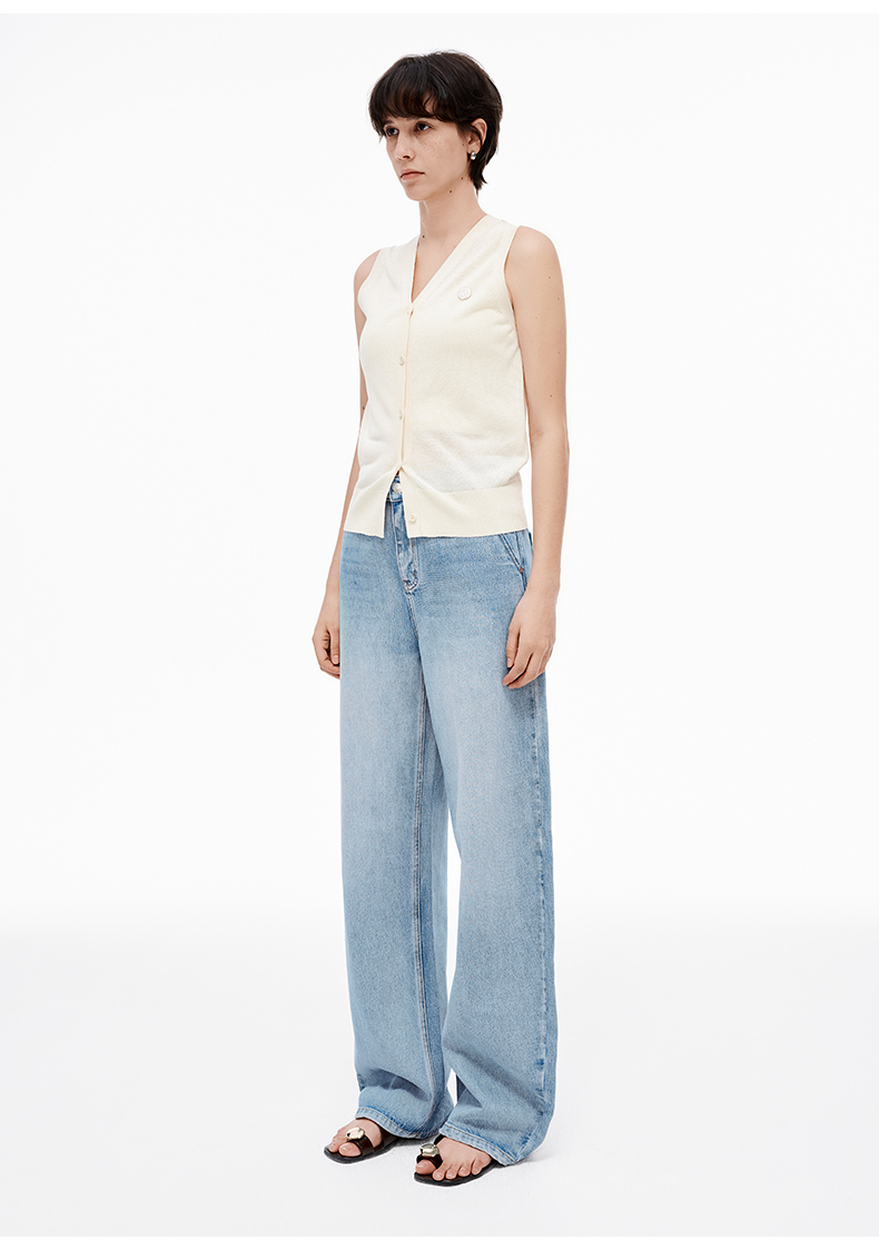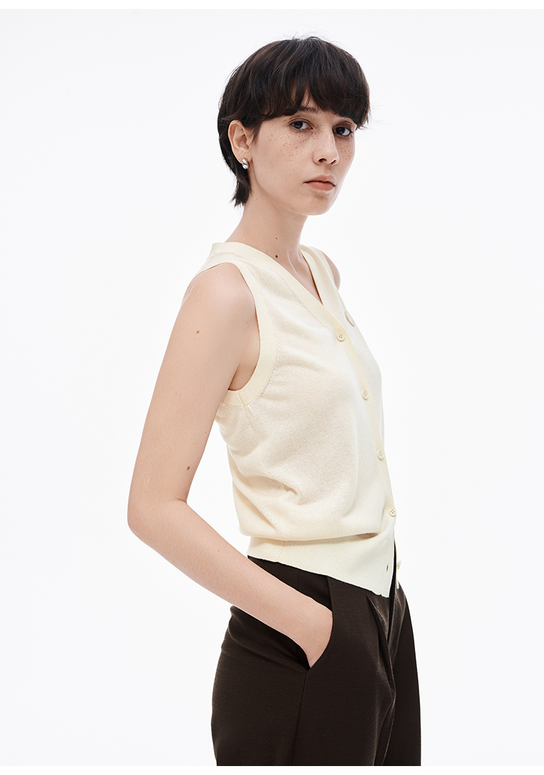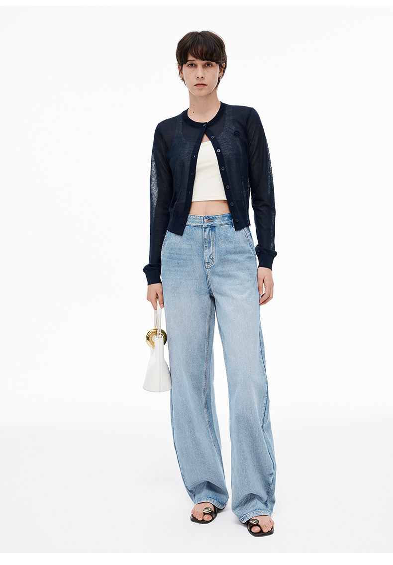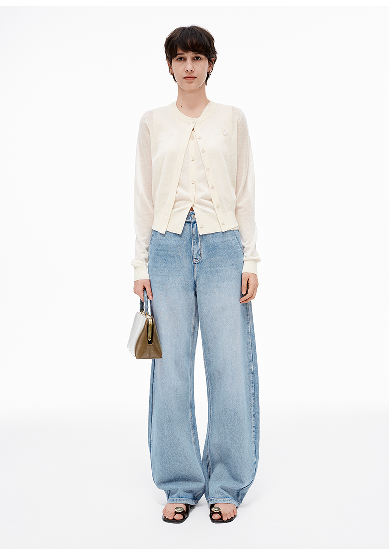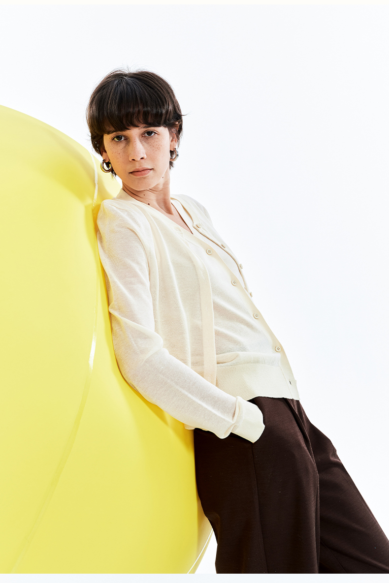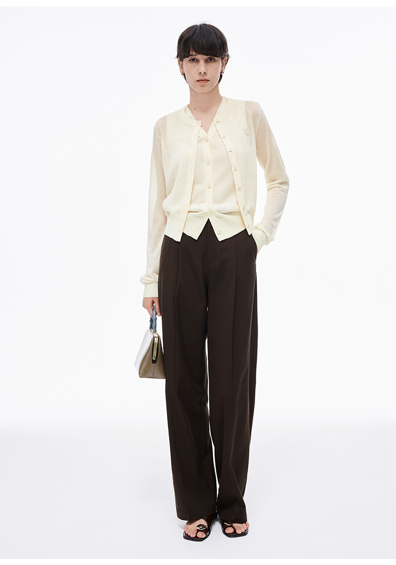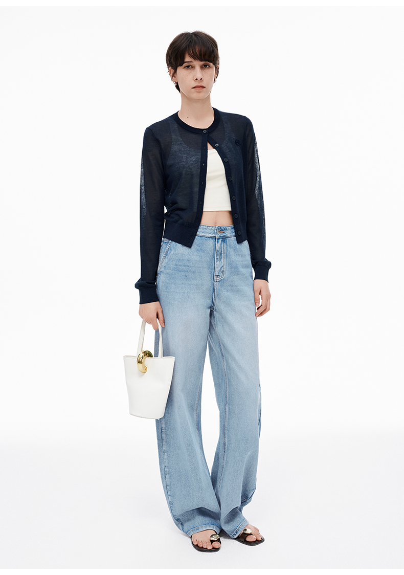 【笑脸衣橱】SELFWHO亚麻混纺圆弧领针织开衫女2025夏薄款透气纸片人毛衣外套