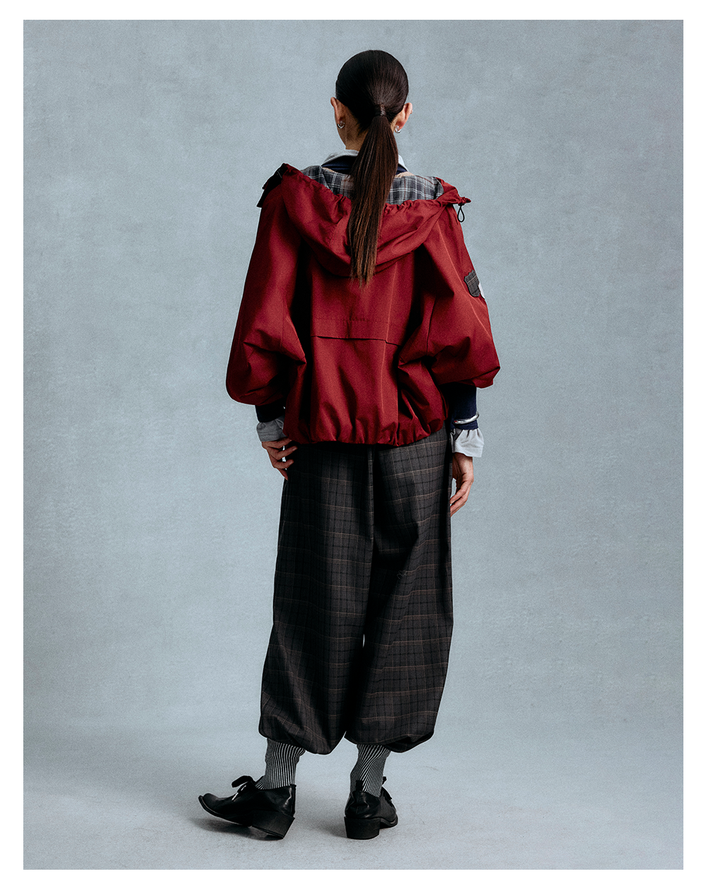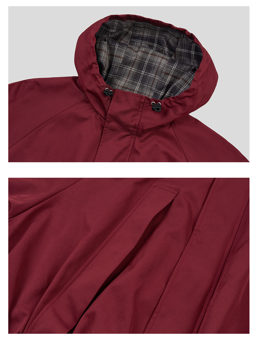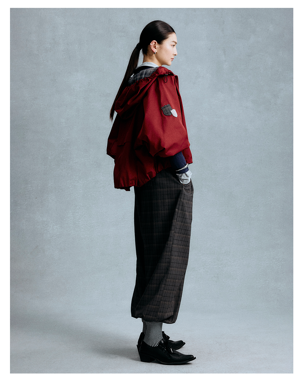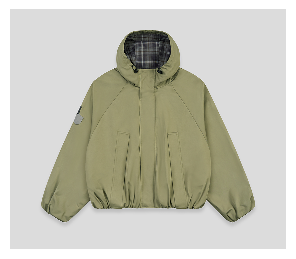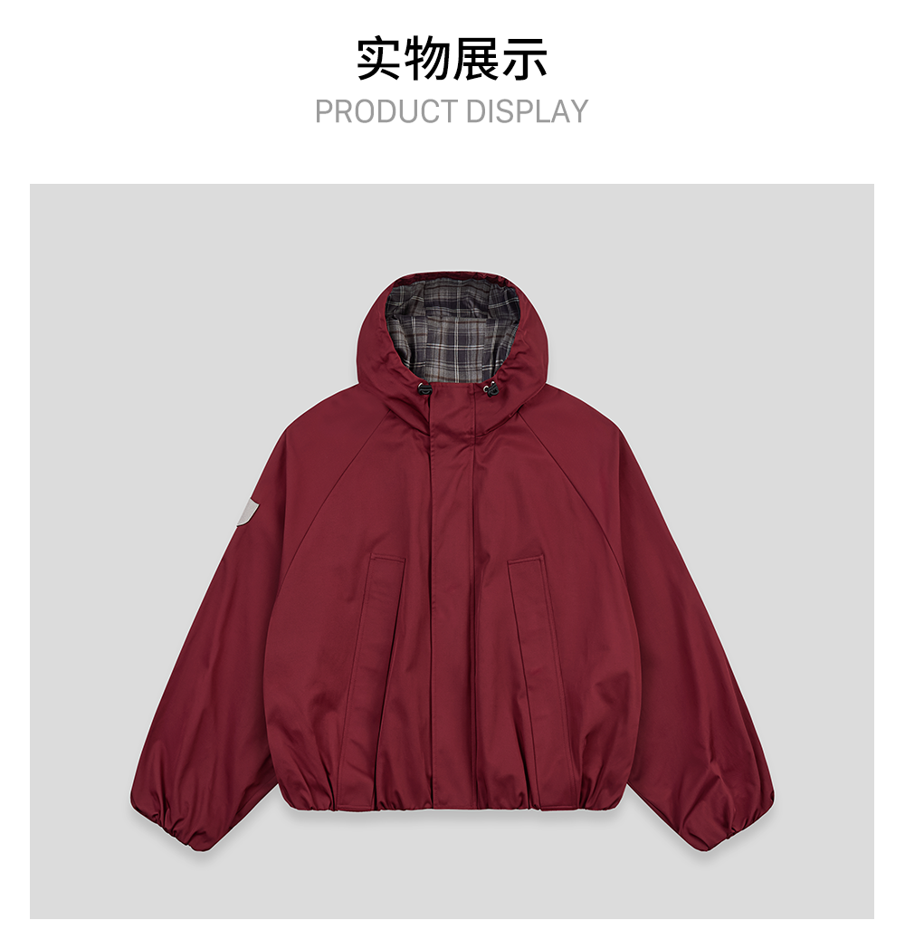 GOODBAI 徽章剪影贴布格纹撞色连帽拉链外套