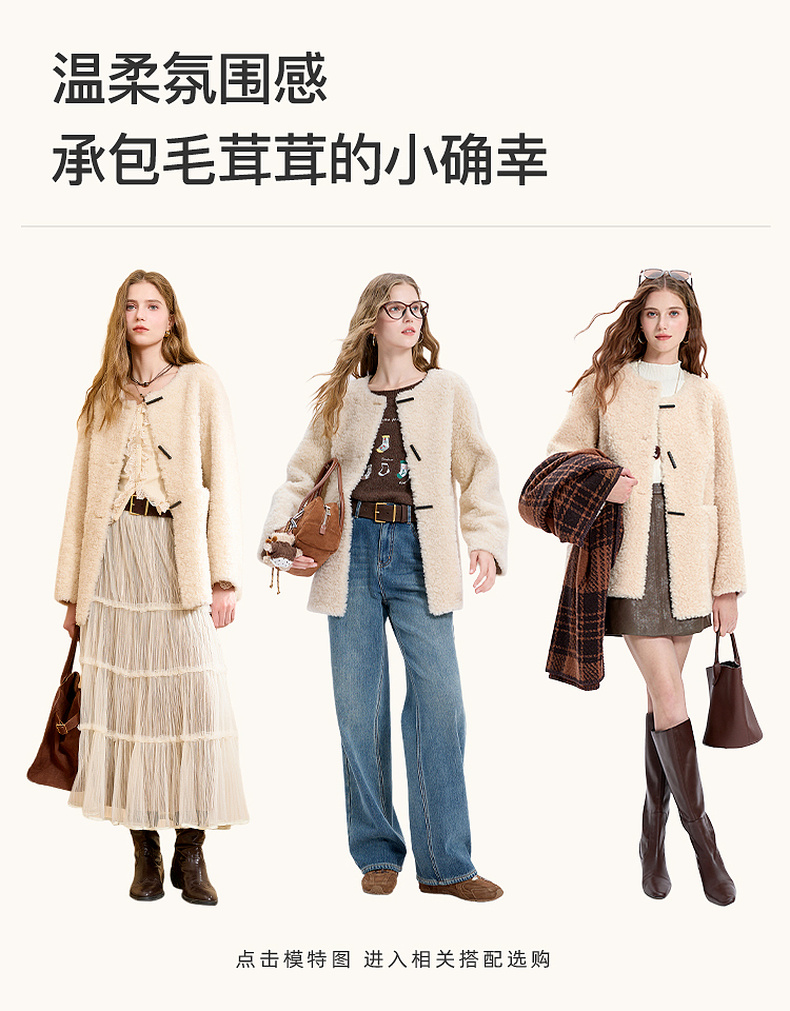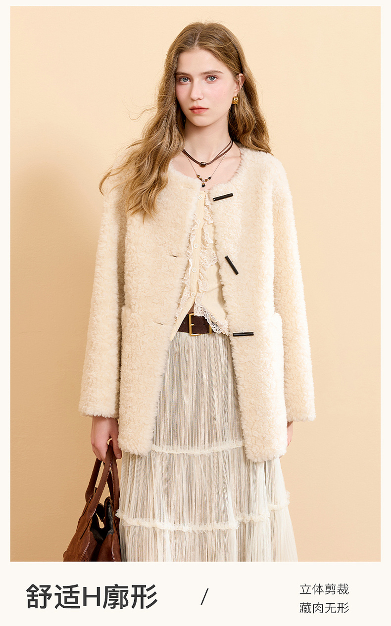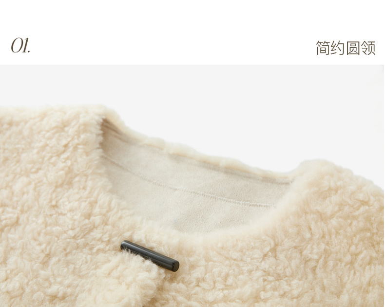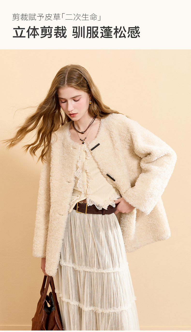 【100绵羊毛瘦瘦皮草】三彩2025冬季新款圆领毛毛外套休闲简约M