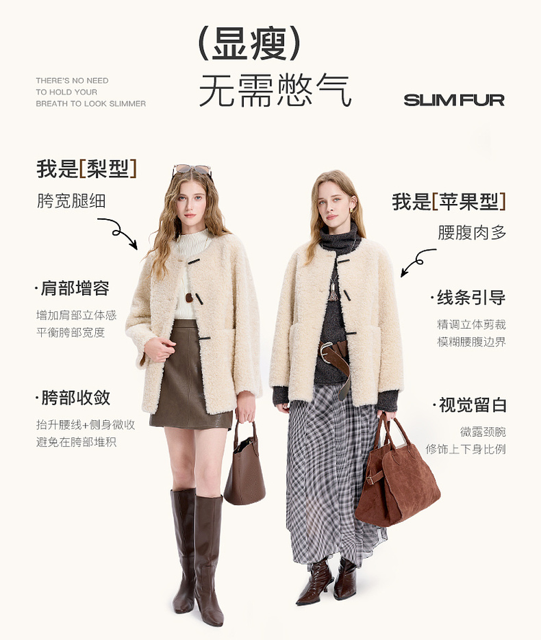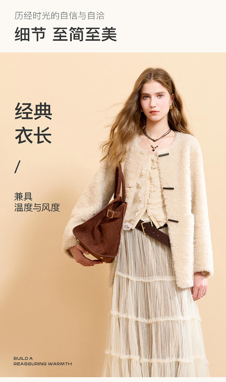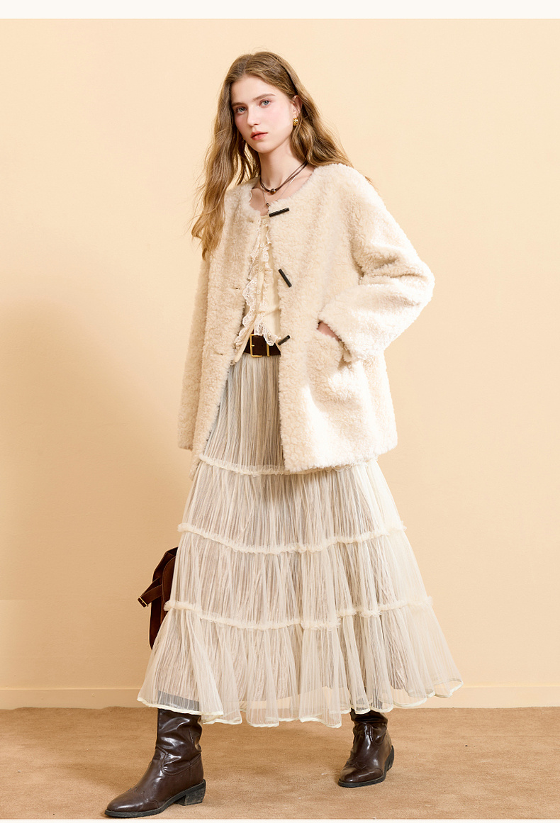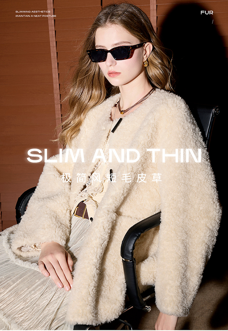 【100绵羊毛瘦瘦皮草】三彩2025冬季新款圆领毛毛外套休闲简约M