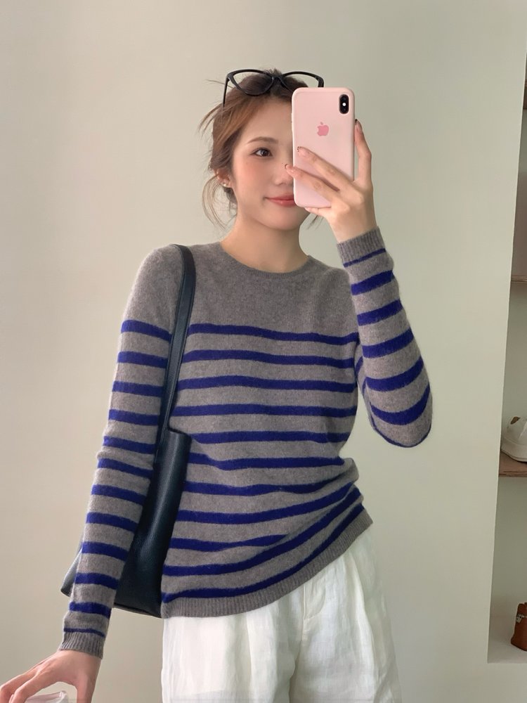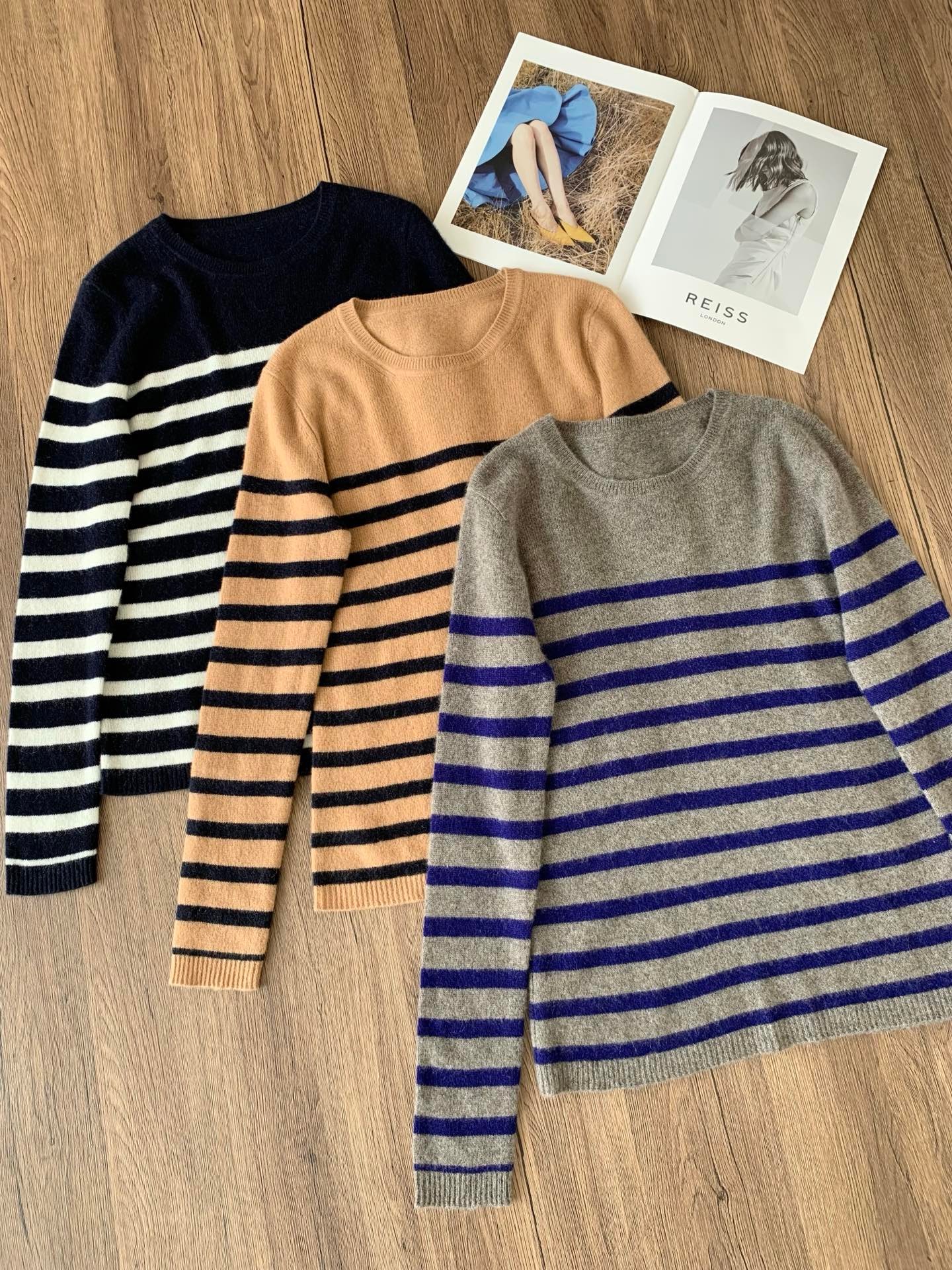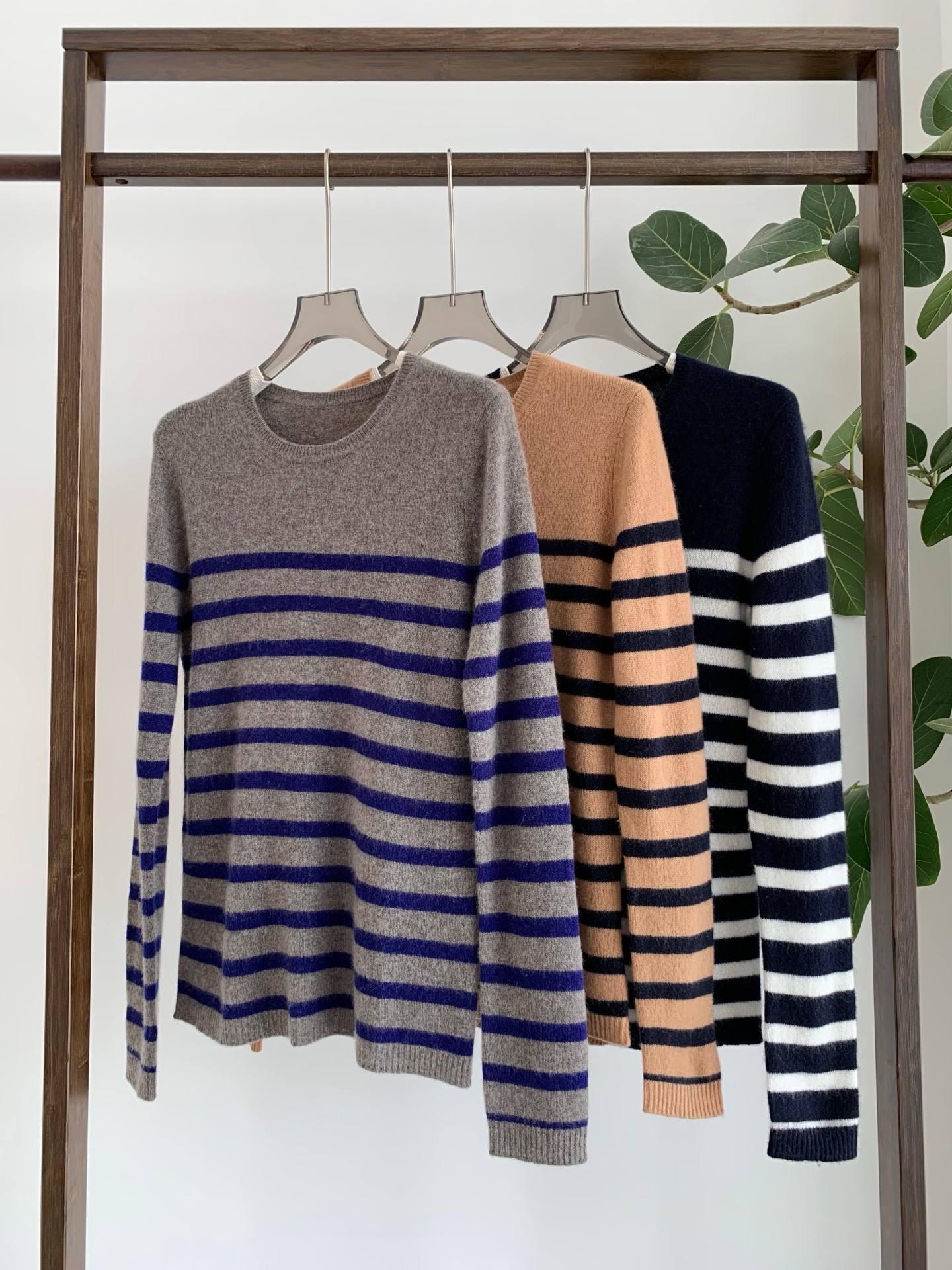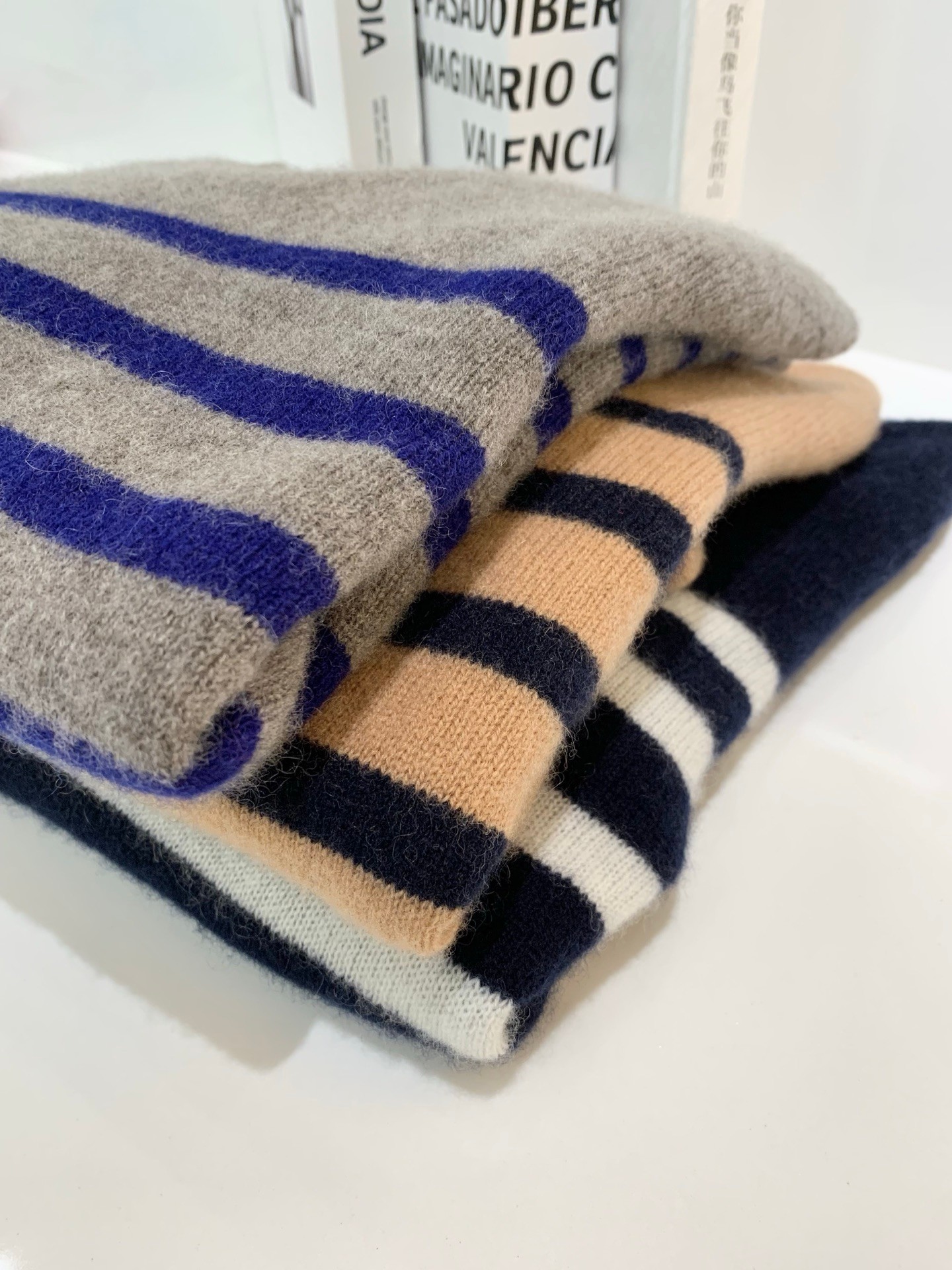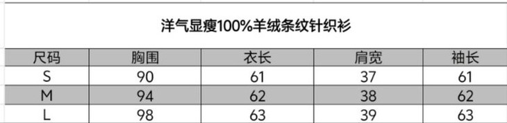 百分百进口绒,亲肤度堪比国内的Baby绒了,大家一定感受下,轻盈柔软且保暖性非常好!!经典条纹设计简约时尚,兼顾优雅与休闲感!正肩版型,贴合肩线的剪裁设计,精准勾勒肩部轮廓,不拖沓不松垮,职场通勤时搭西装裤显干练,休闲聚会配牛仔裤、半裙 轻松切换风格,为日常穿搭拓宽可能性