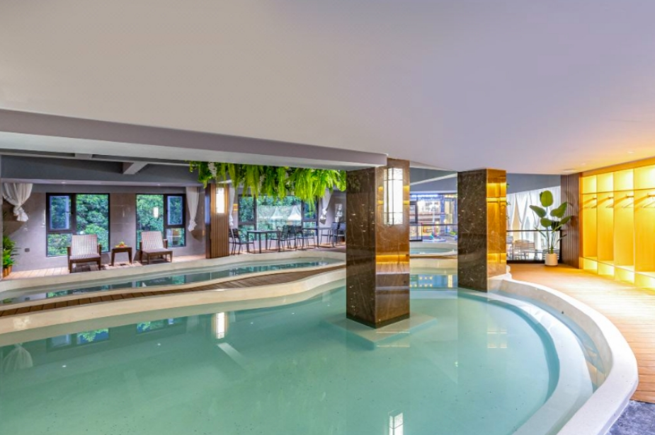 集住宿、餐饮、会务和温泉、自助洗衣房、健身房、书吧休闲为一体,