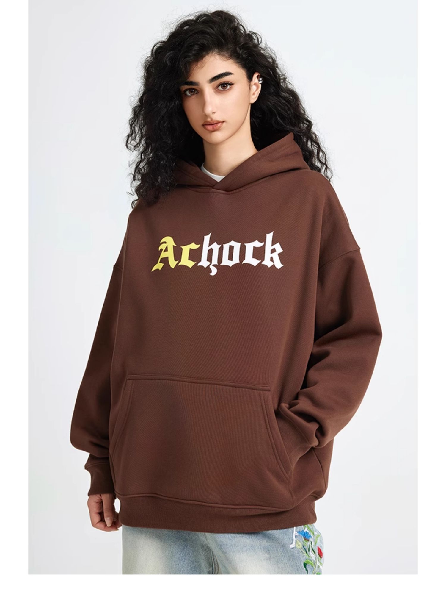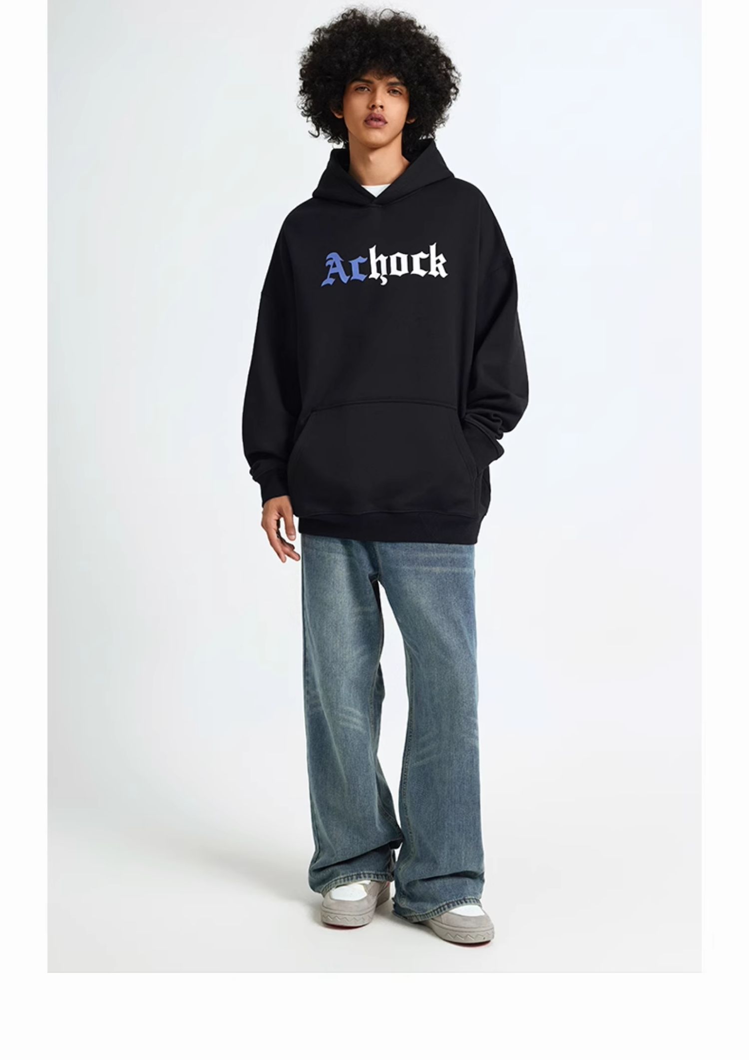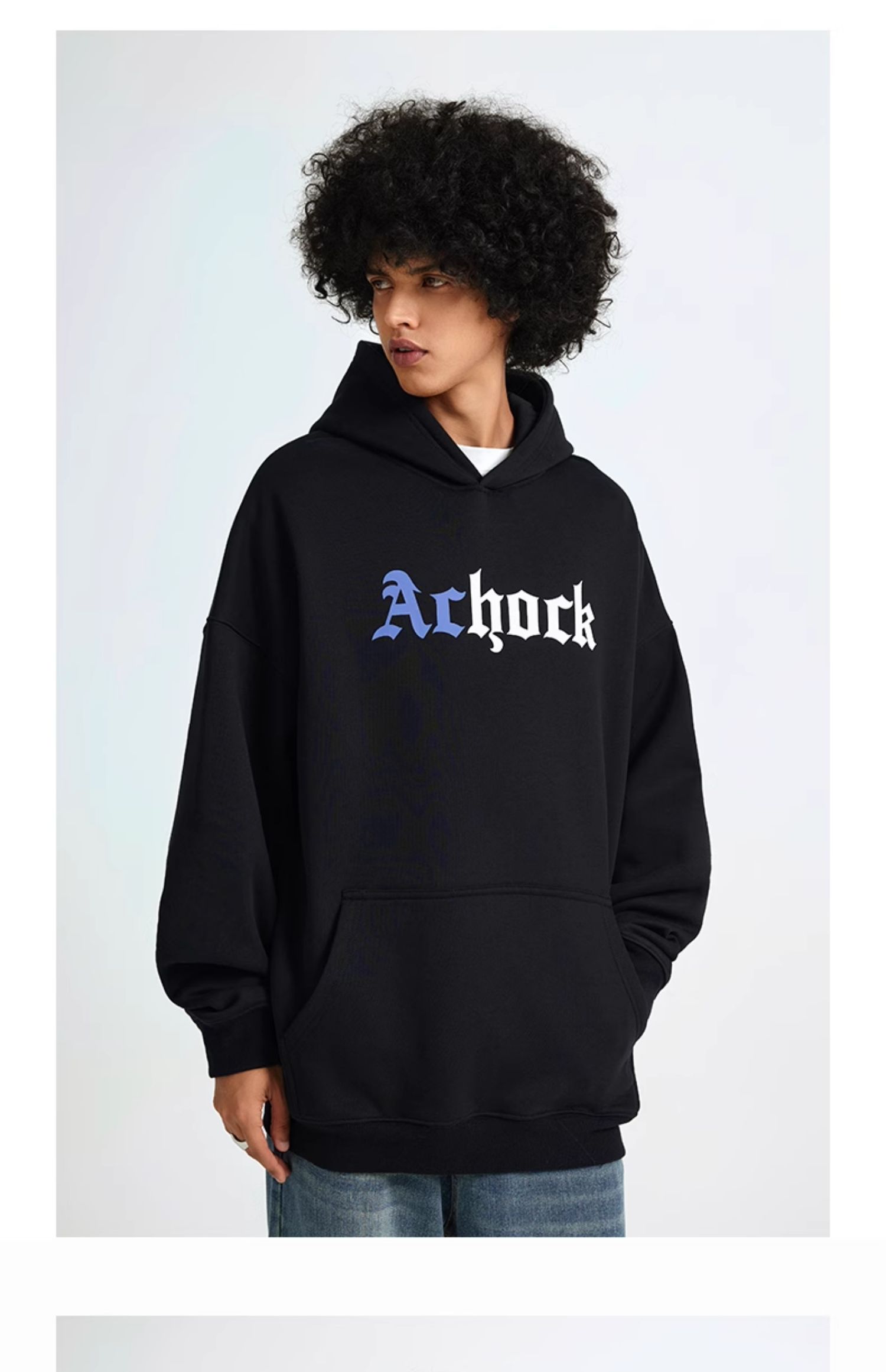 【Achock官方店】国潮美式拼色印花logo加绒重磅加厚卫衣连帽衣男