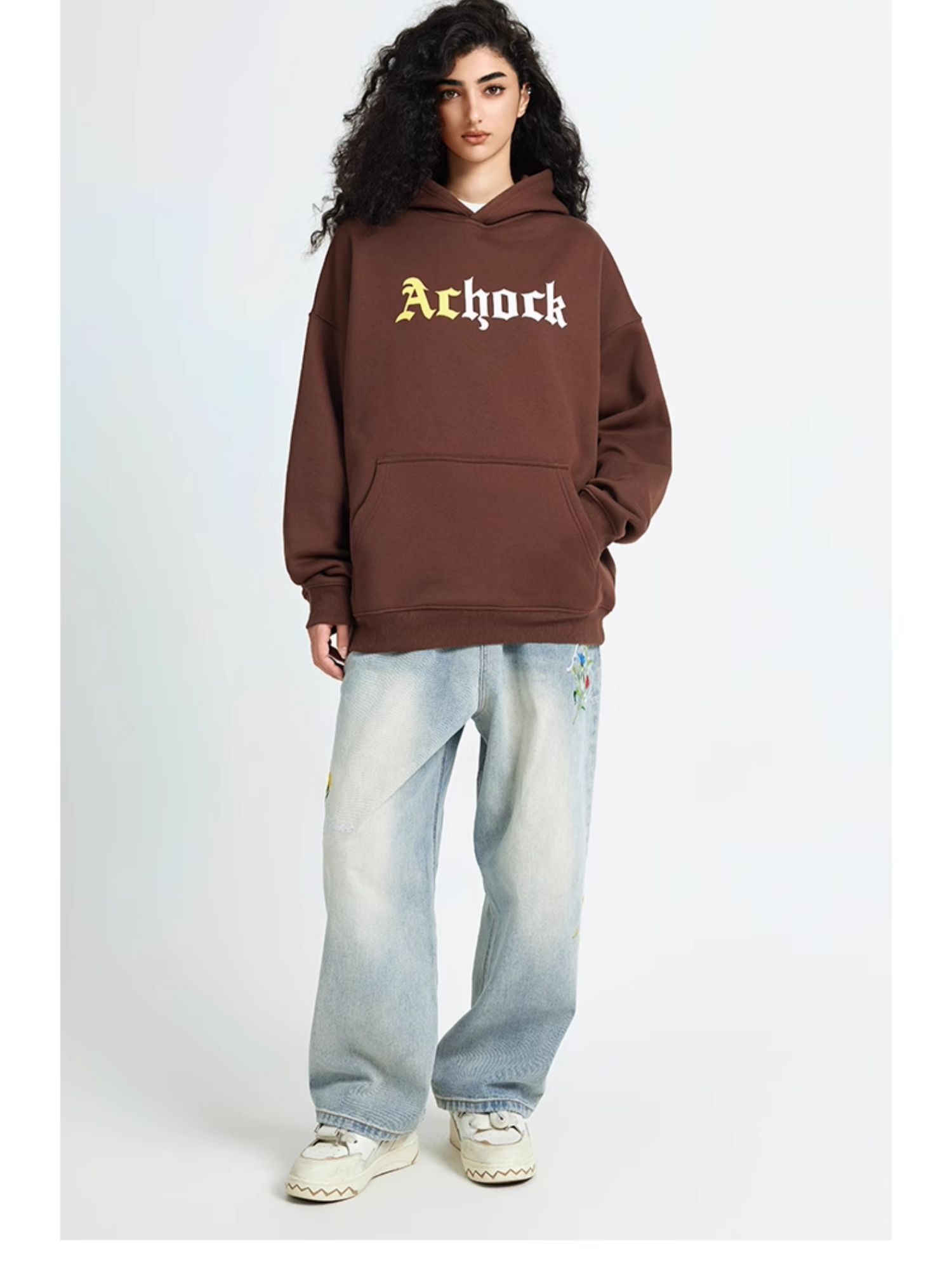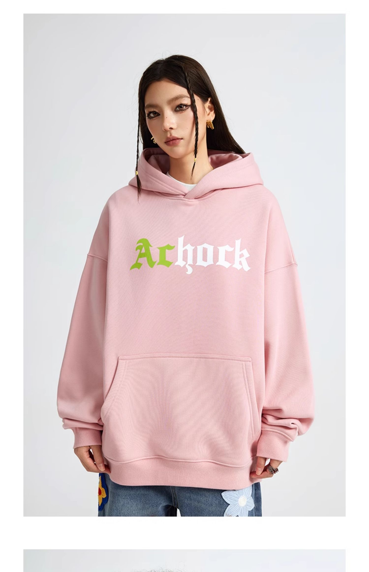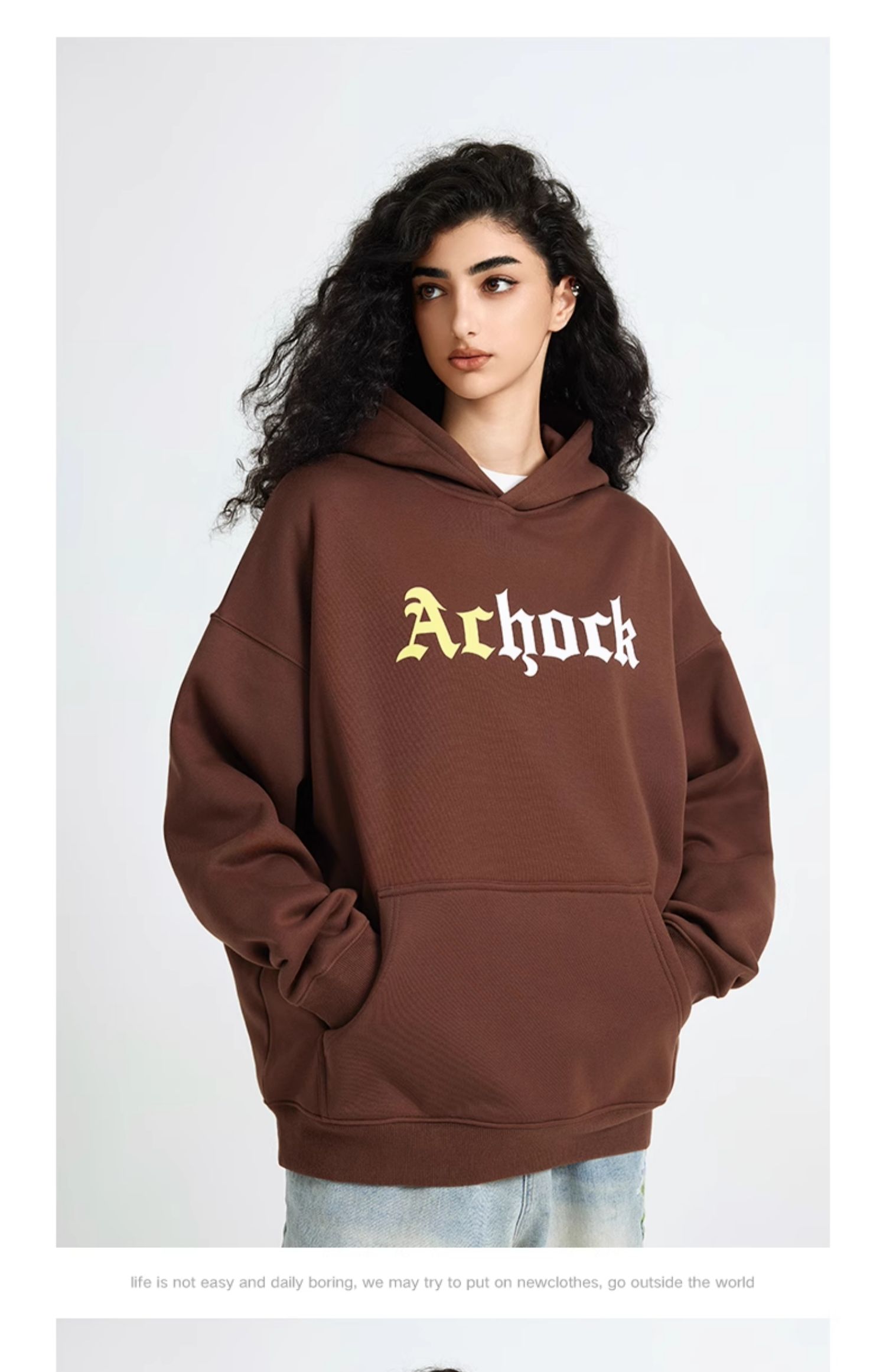 【Achock官方店】国潮美式拼色印花logo加绒重磅加厚卫衣连帽衣男