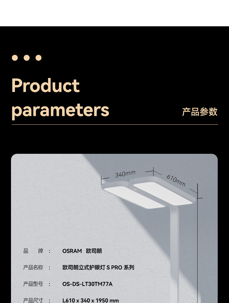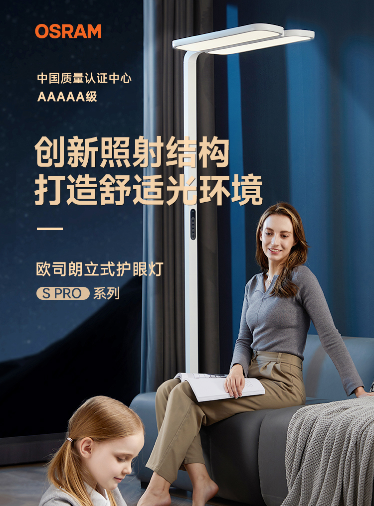 欧司朗OSRAM大路灯护眼台灯学习全光谱落地式台灯立式类太阳光儿童灯SPRO 系列蓝光