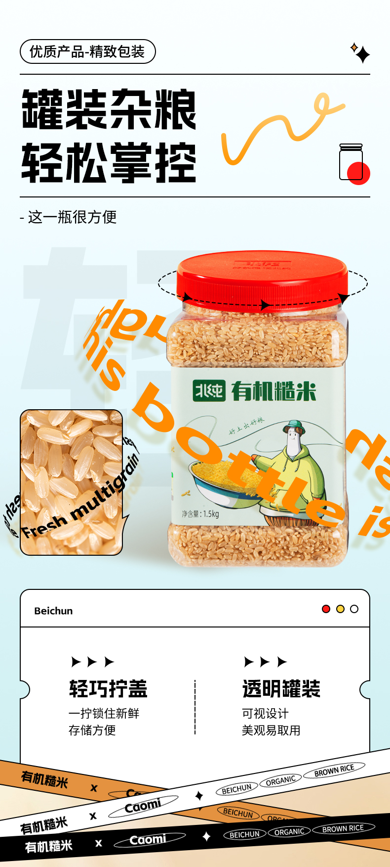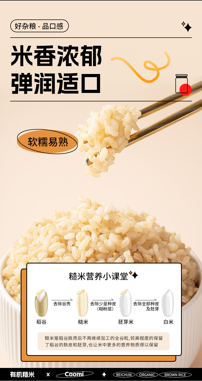 【北纯】有机糙米1.5kg(东北 粗粮杂粮 大米伴侣 粥米搭档 可溯源)罐装