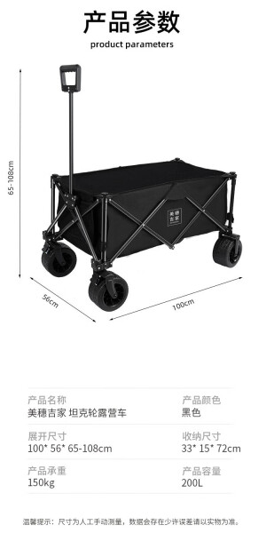 美穗吉家 聚拢款7寸双刹坦克轮露营车200L(黑色)