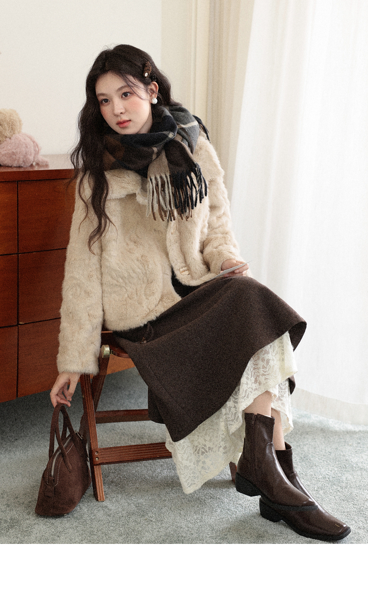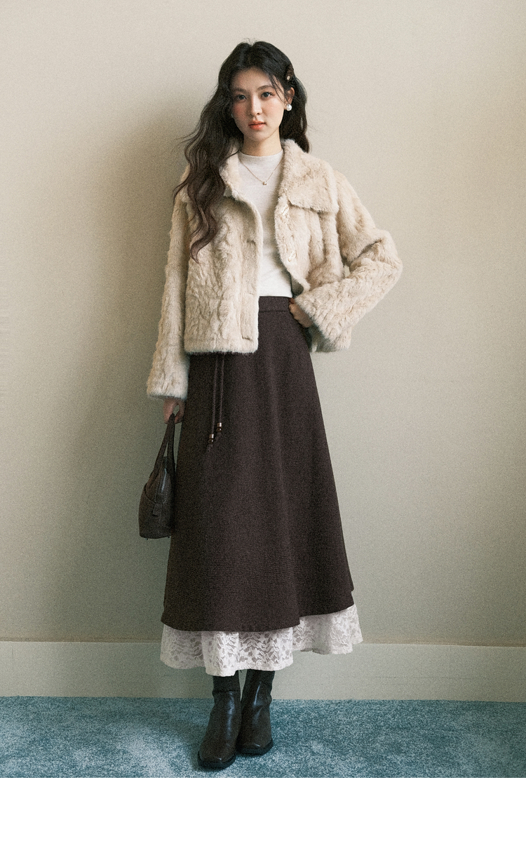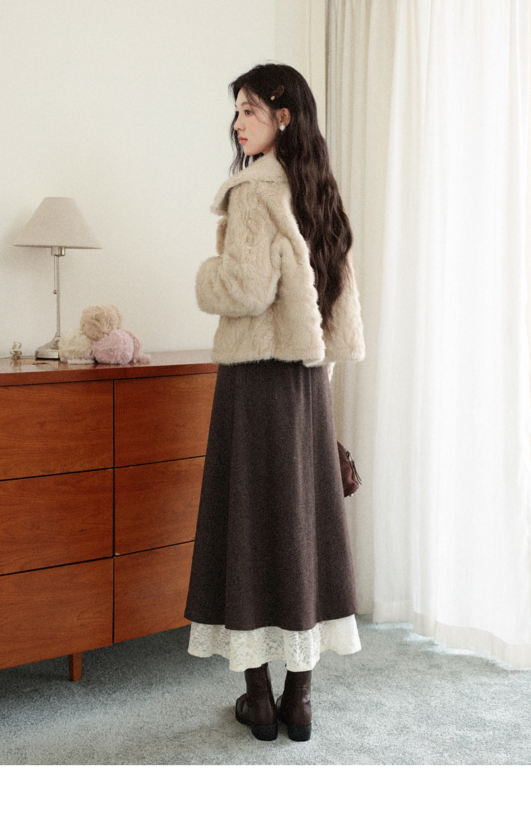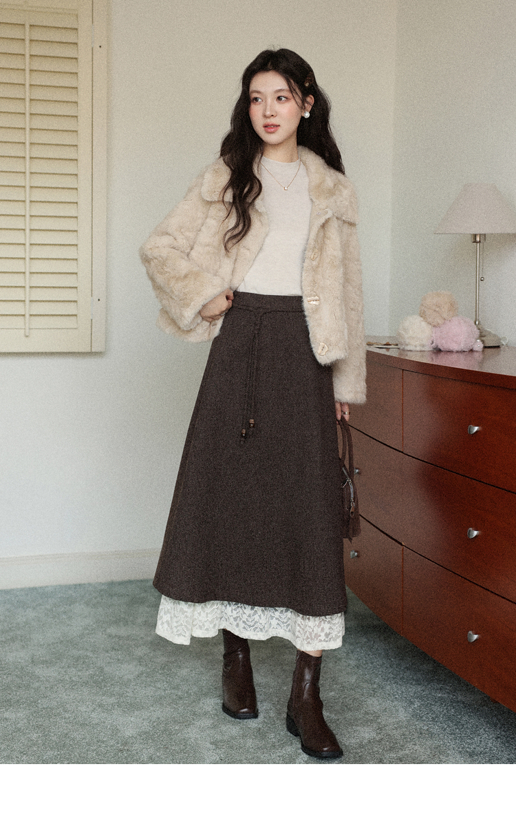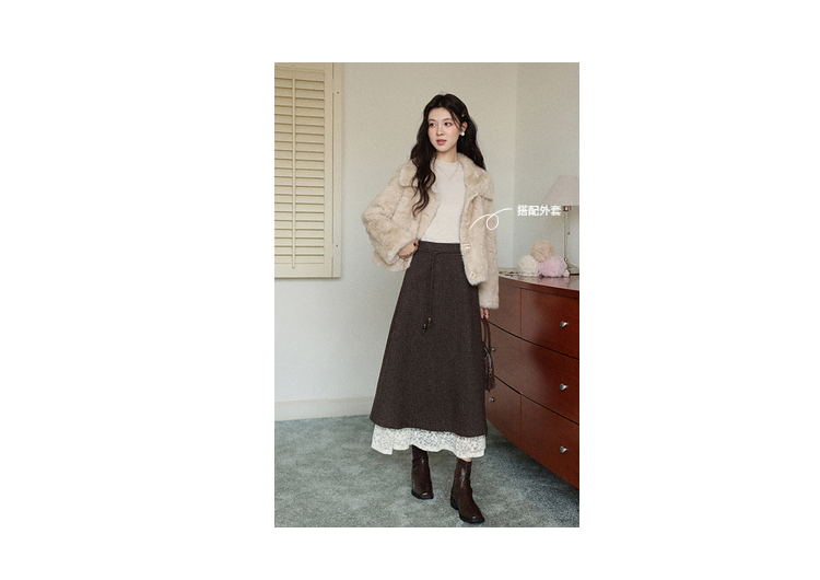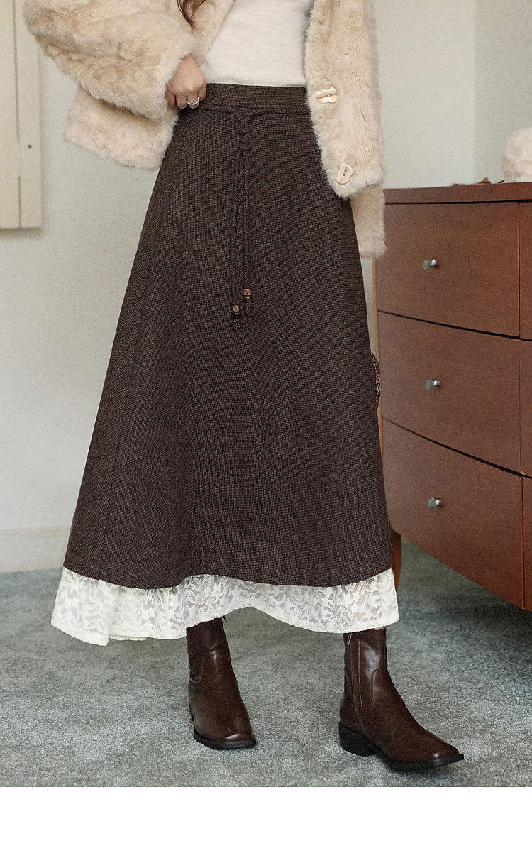 鹿向南「枫糖拿铁」蕾丝拼接半身裙女秋小个子咖色梨形伯克利裙子