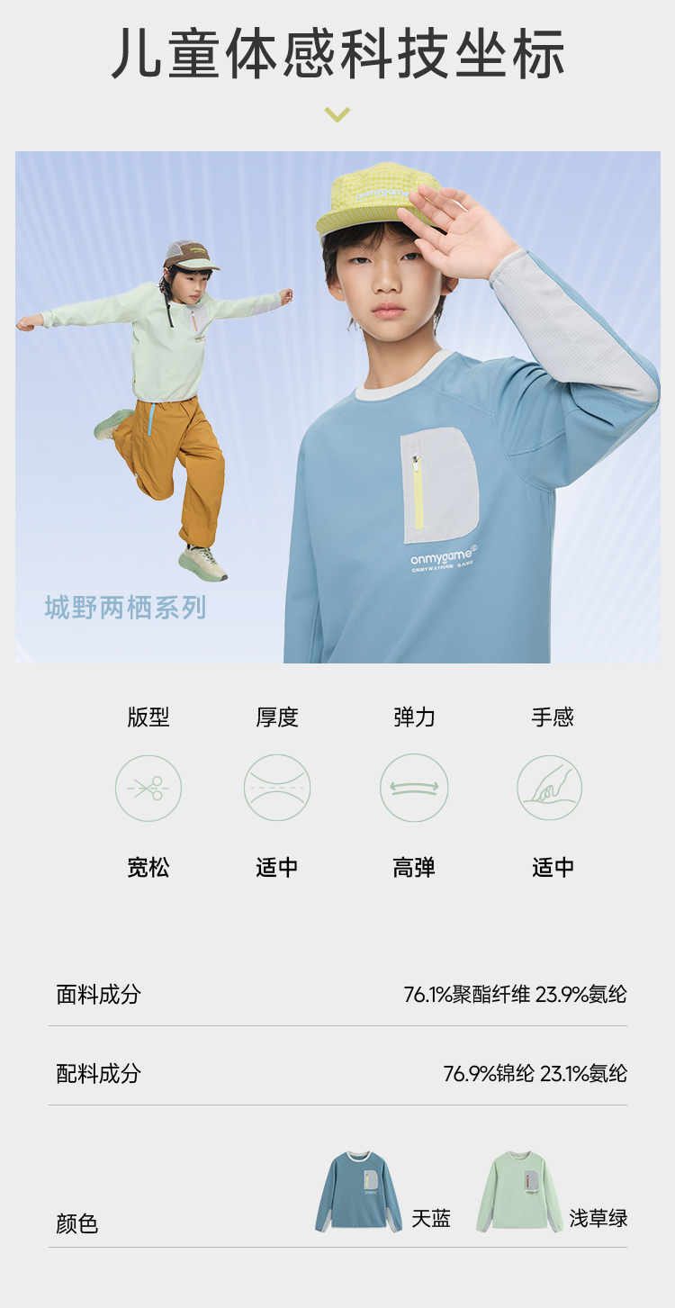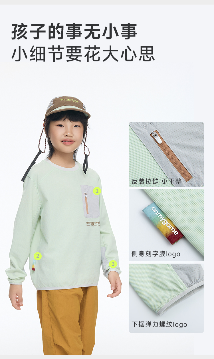 onmygame男女童可穿春装儿童连帽卫衣户外运动衣打底衫童装上衣