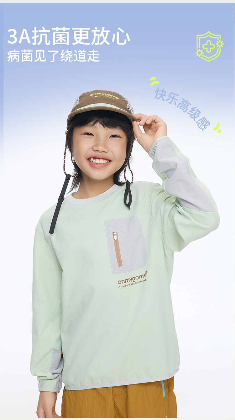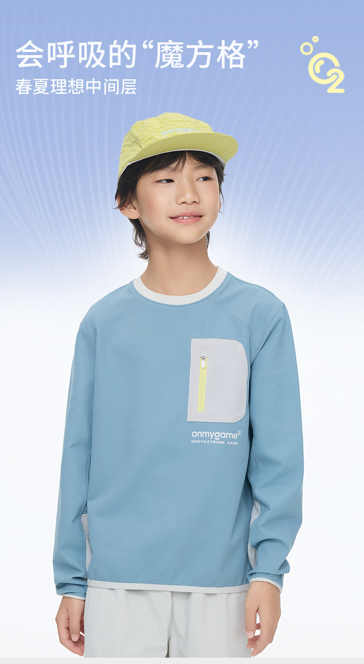 onmygame【呼吸魔方格】儿童长袖吸湿速干运动T恤速干抗菌GQ11119130