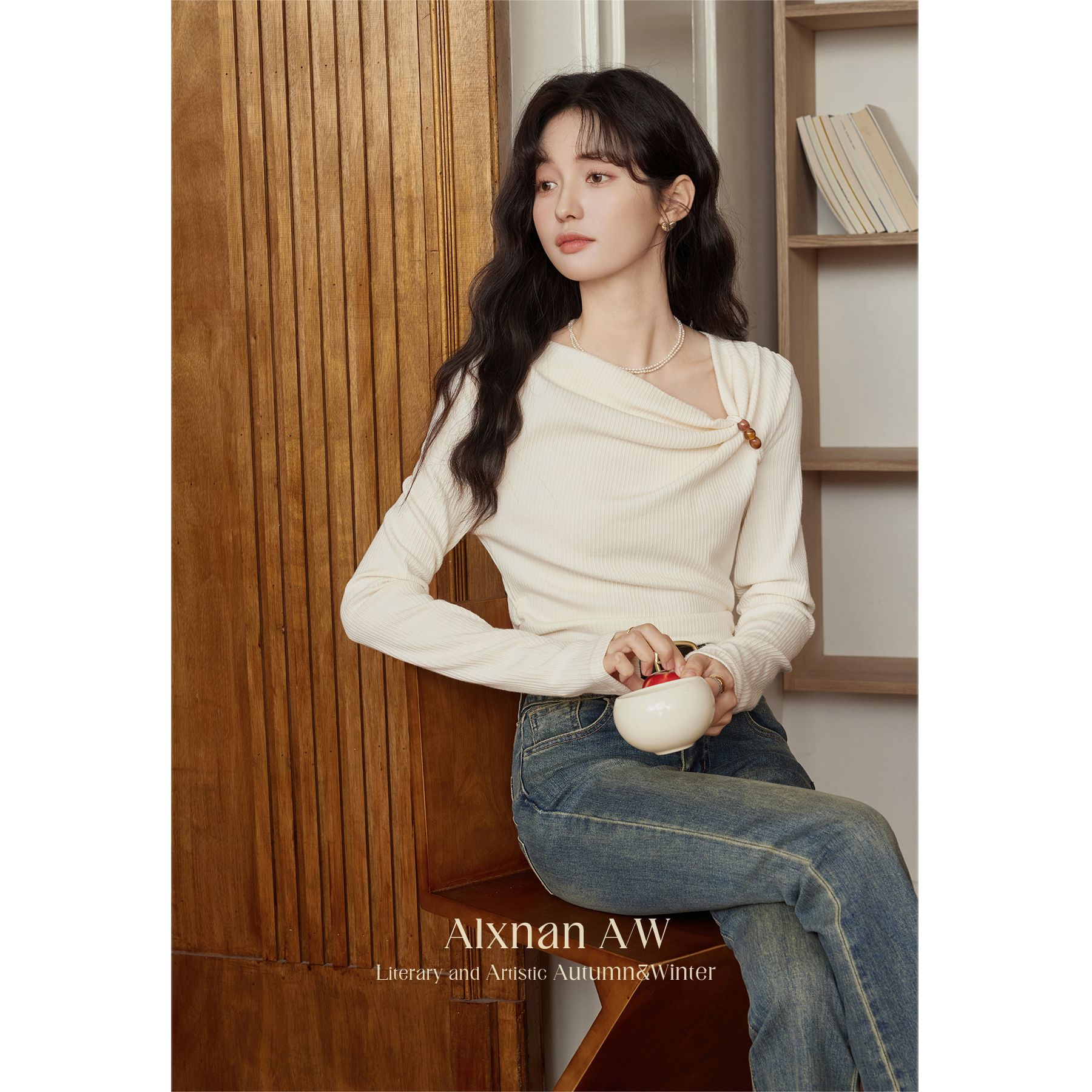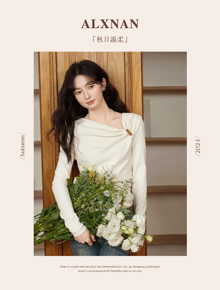 鹿向南「秋日温柔」设计感小众T恤2024秋季新款气质长袖上衣女