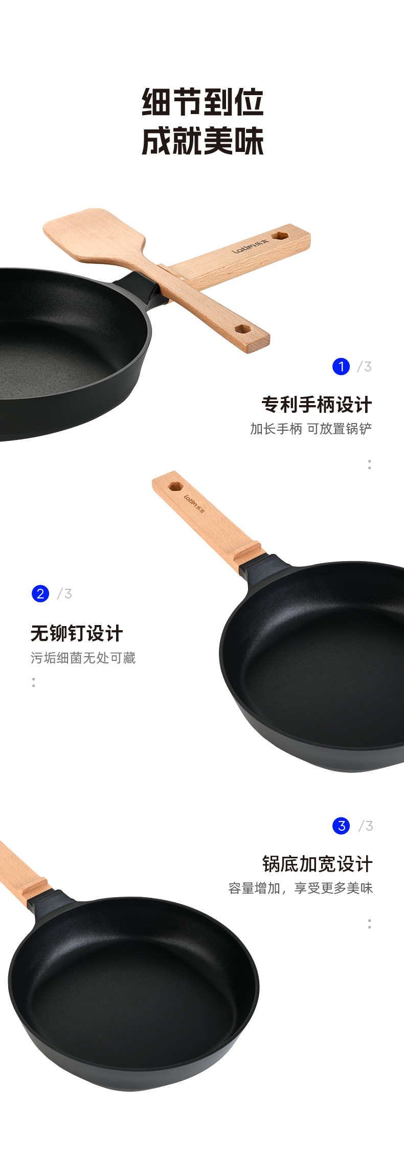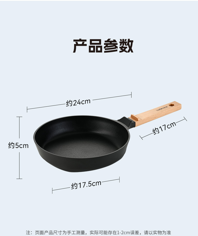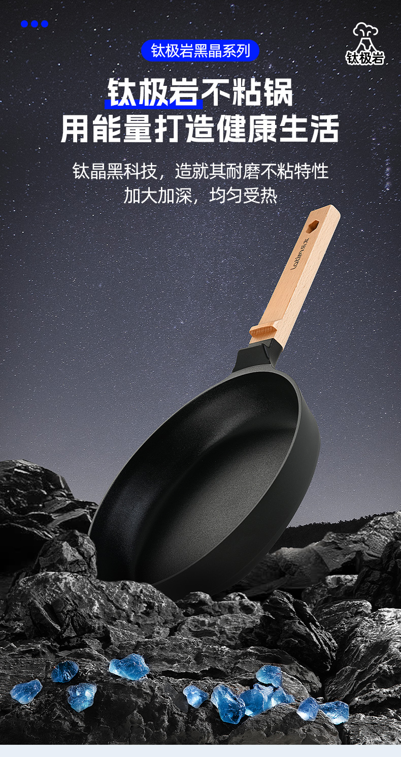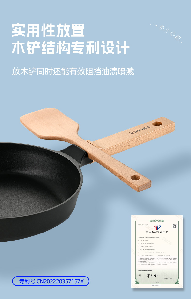 乐太钛极岩黑晶煎锅24cm煎锅(含榉木木铲)(含盖)+压缩海绵