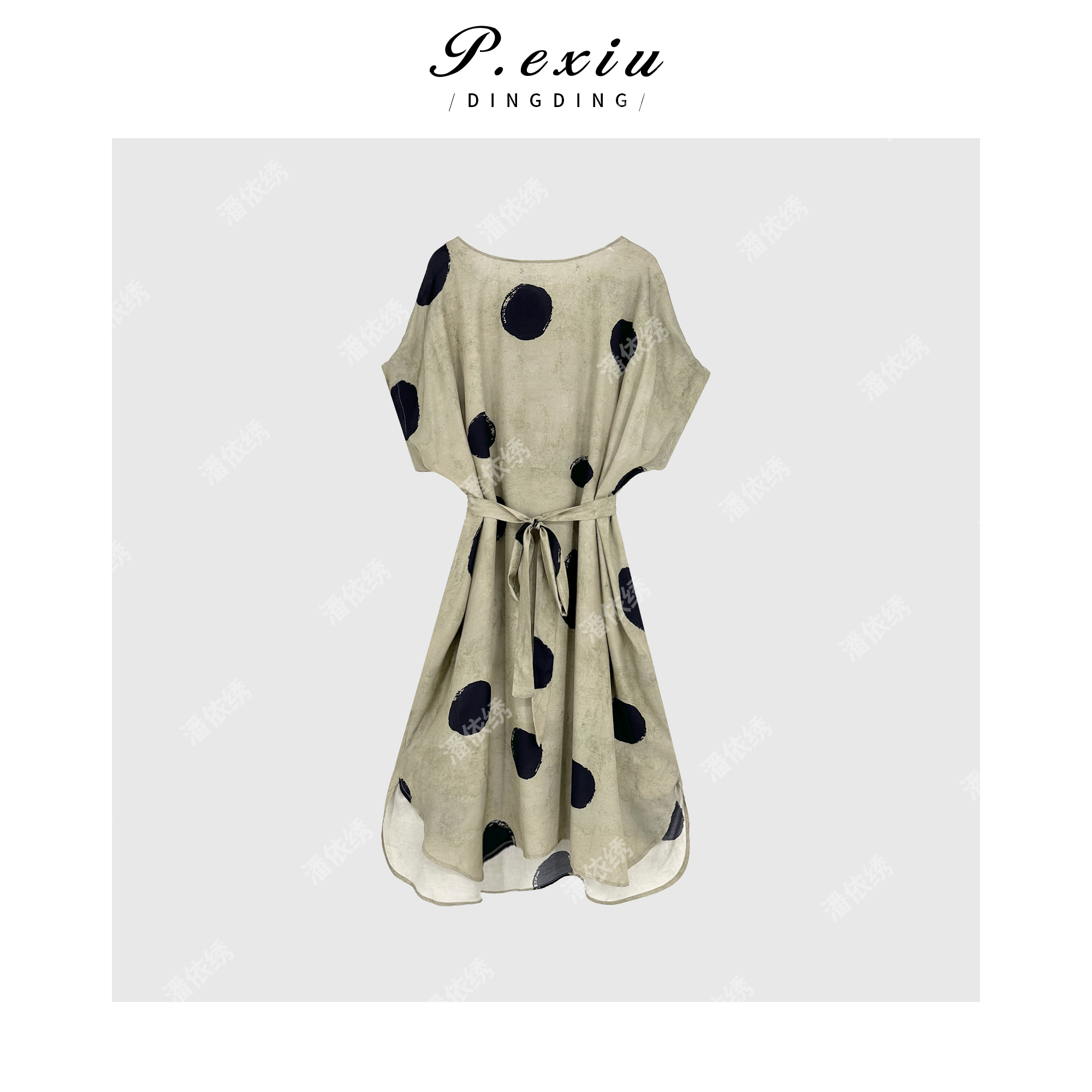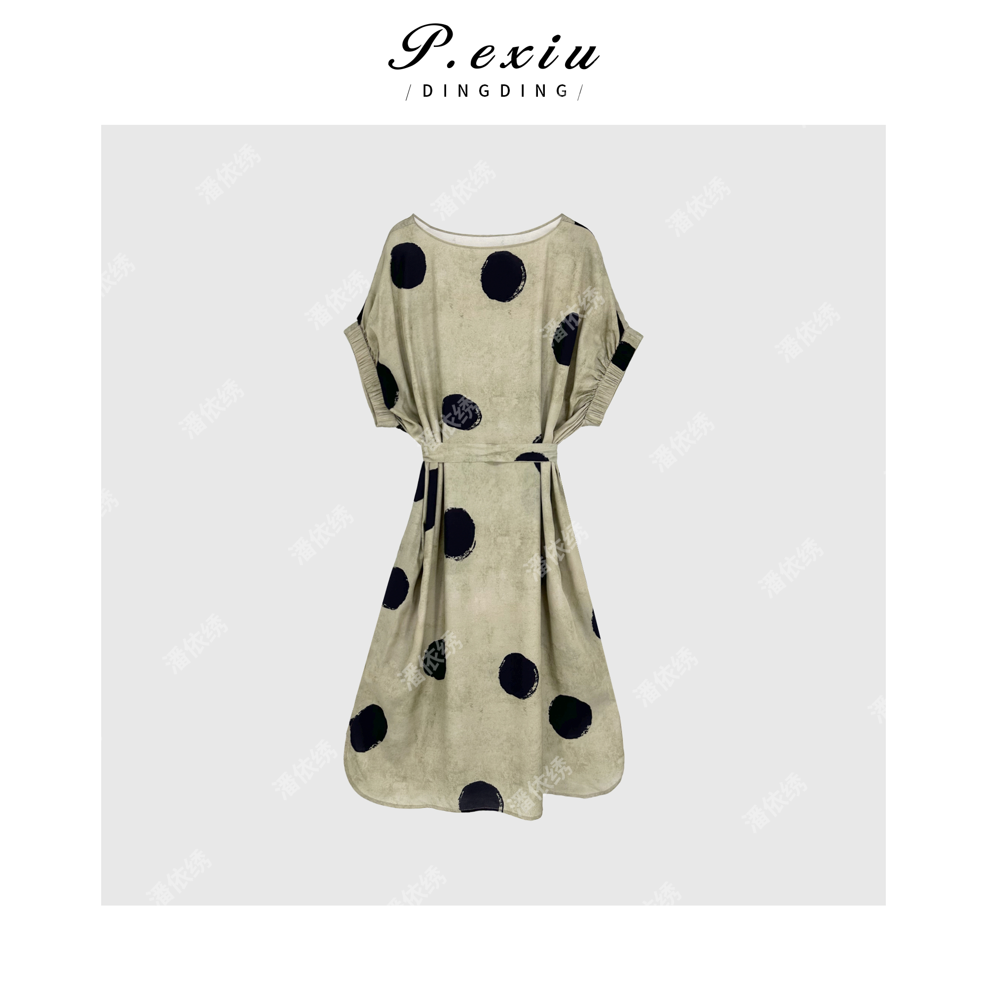 04-3潘依绣丁丁宠粉PanYiXiu/潘依绣人丝复古气质炒染高级感波点连衣裙 W-62003