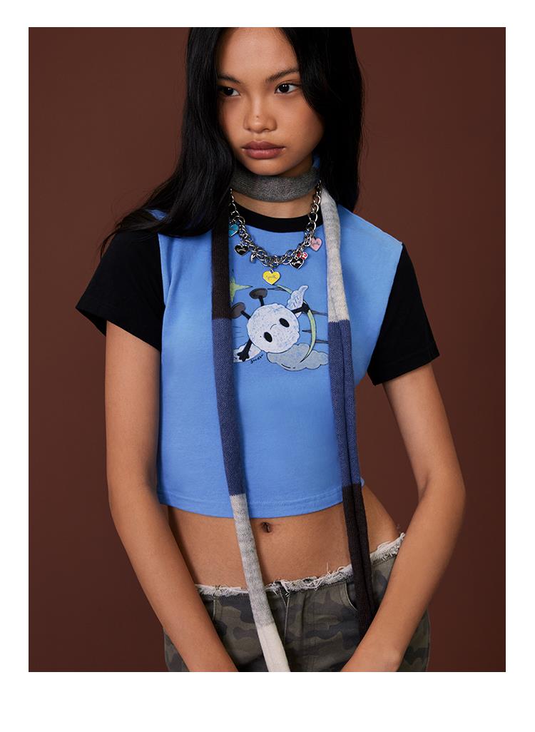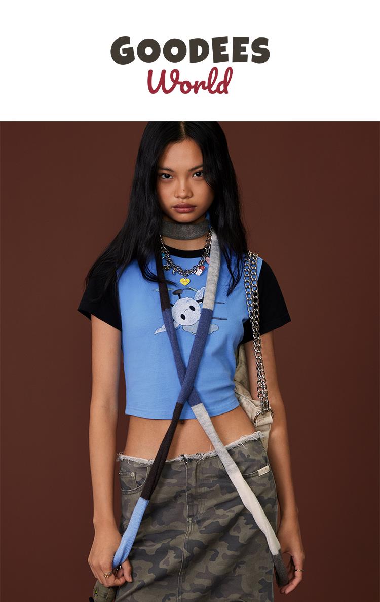 GOODBAI GB绣花拼接阔腿弯刀牛仔长裤