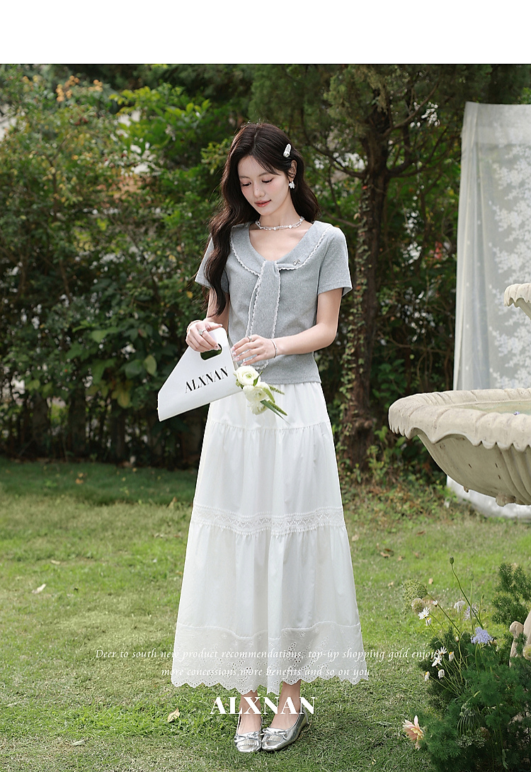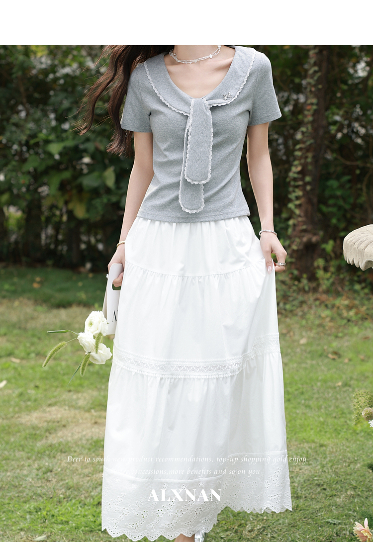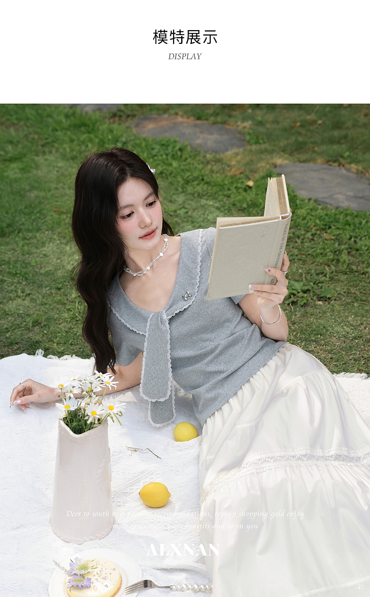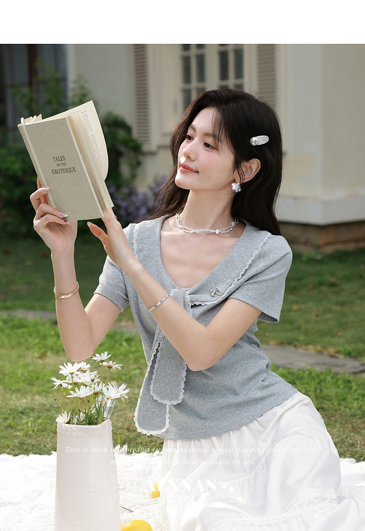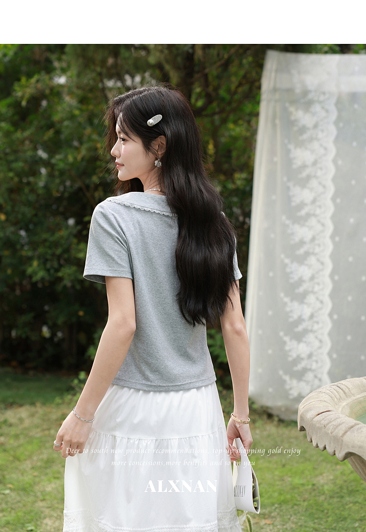 鹿向南「凉夏流云」灰色短袖T恤夏季新款时尚百搭设计感短上衣女