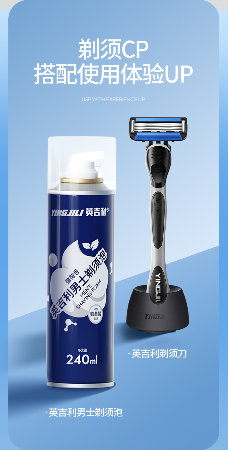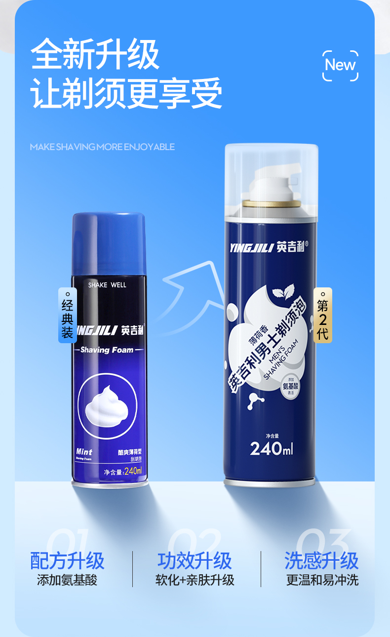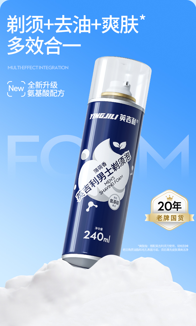 英吉利男士剃须泡沫剃须刀手动刮胡子泡沫软化胡须剃须膏剃须啫喱【氨基酸款】柠檬/薄荷1瓶240ml(颜色可备注)