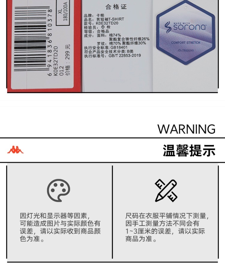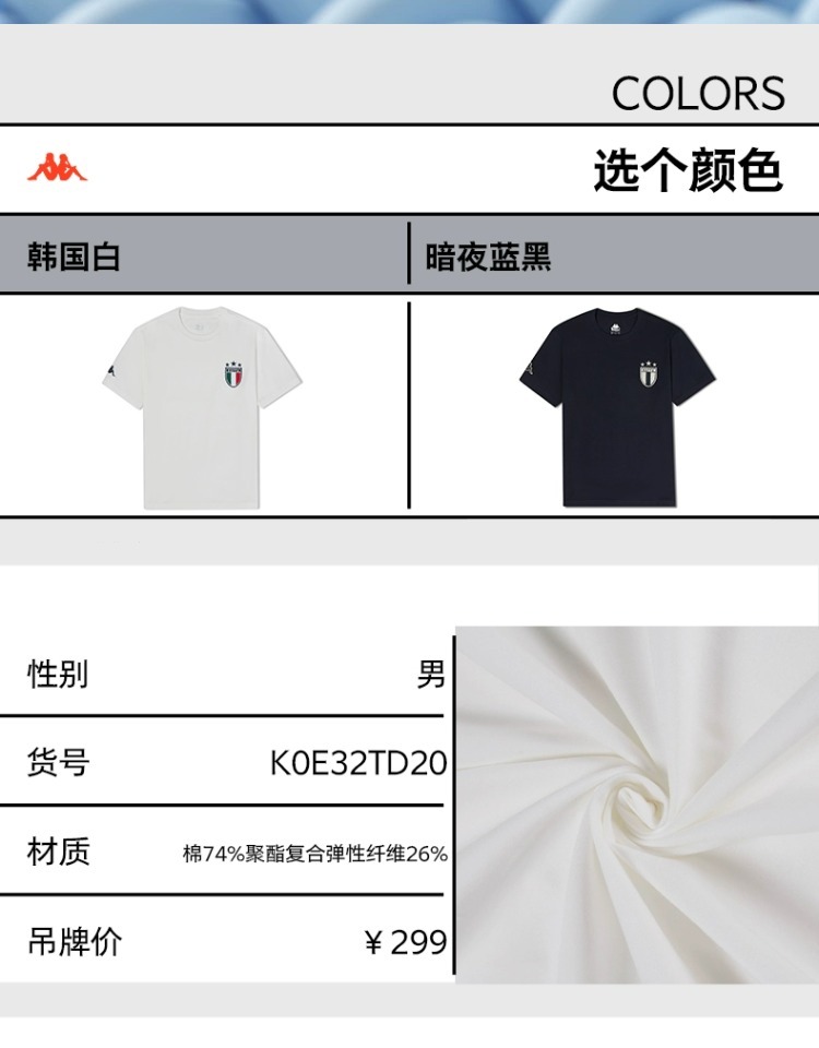 Kappa卡帕复古短袖2024新款男夏徽章休闲T恤索罗娜半袖K0E32TD20