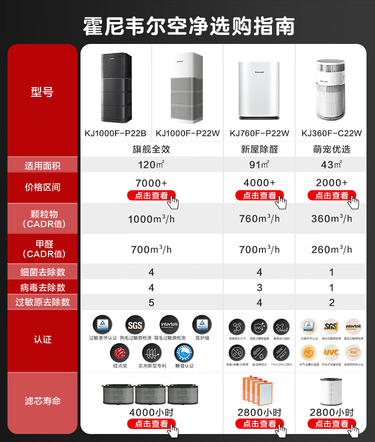 霍尼韦尔(Honeywell)空气净化器除甲醛 除细菌 除花粉 除过敏原 空气消毒 KJ760F-P22W