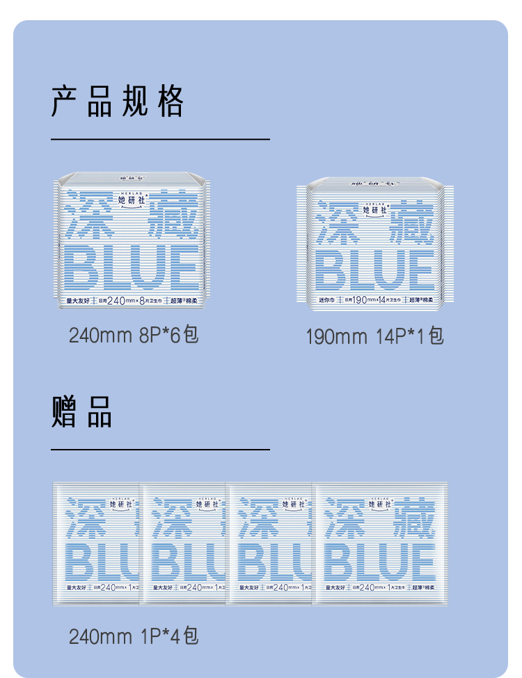 鹿鹿严选·【她研社】日用卫生巾 【深藏BLUE】一吸到底,干爽度+30%,量大爱干爽姐妹必入!到手66片!