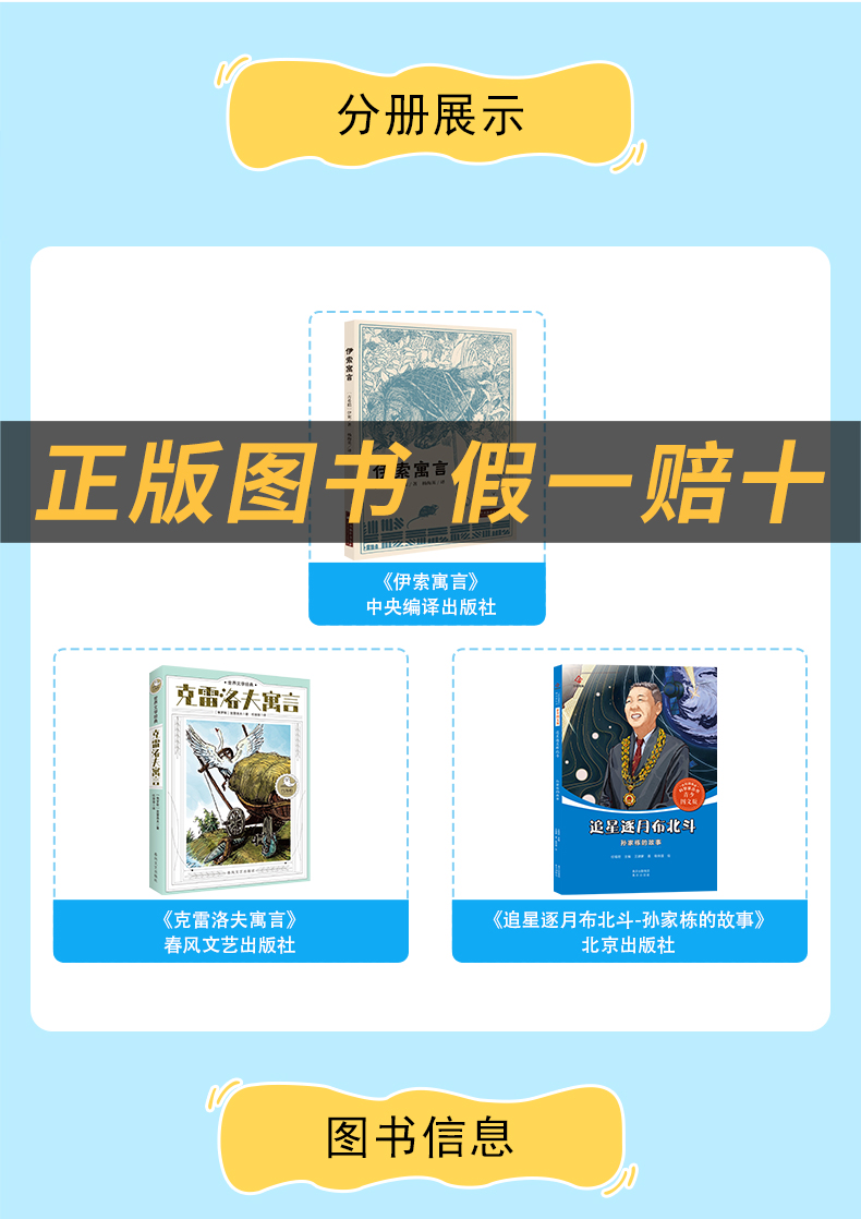 伊索寓言白海豹丛书伊索著/杨海英译中央编译出版社克雷洛夫寓言白海豹丛书克雷洛夫著任溶溶译春风文艺出版社追星逐月布北斗-孙家栋的故事萤火虫丛书王建蒙北京出版社中国古代寓言故事