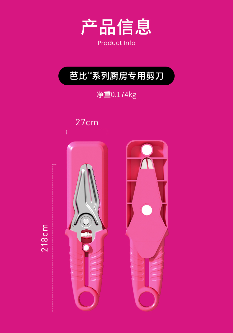 VELOSAN(温仑山)&芭比联名款芭比系列多功能厨房专用剪刀EVPR-01JDB01-G40