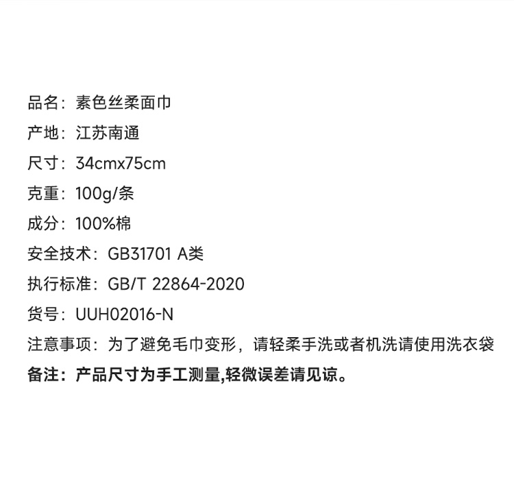 内野SC 素色丝柔面巾