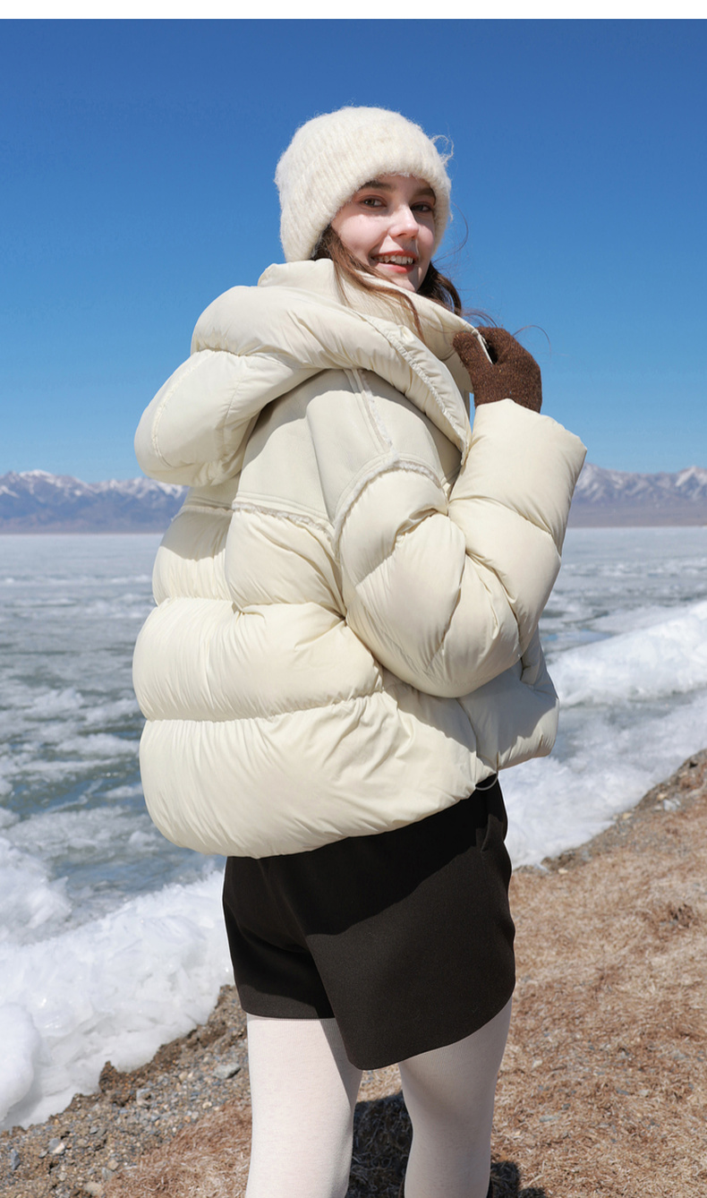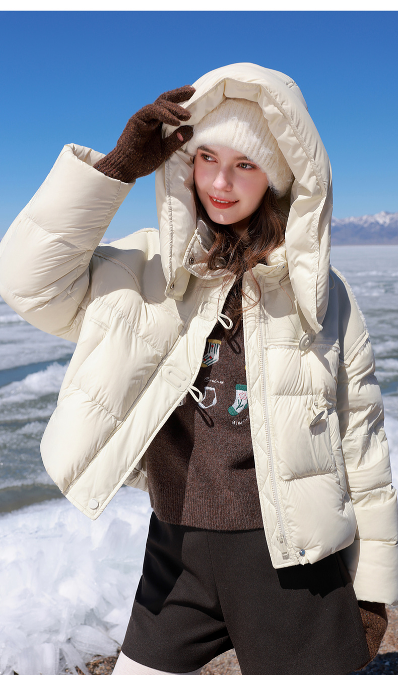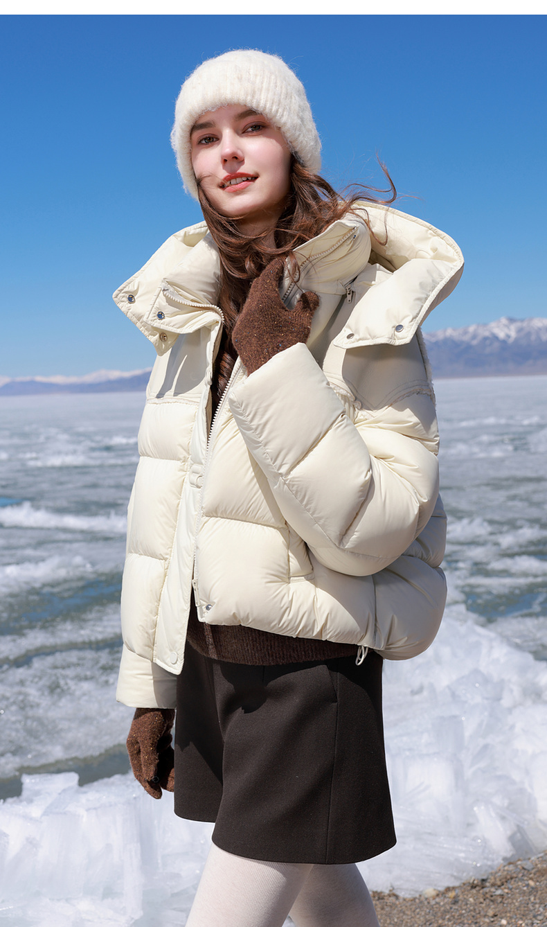【防水易打理】三彩2025冬季新款90白鸭绒羽绒服短款宽松面包服M