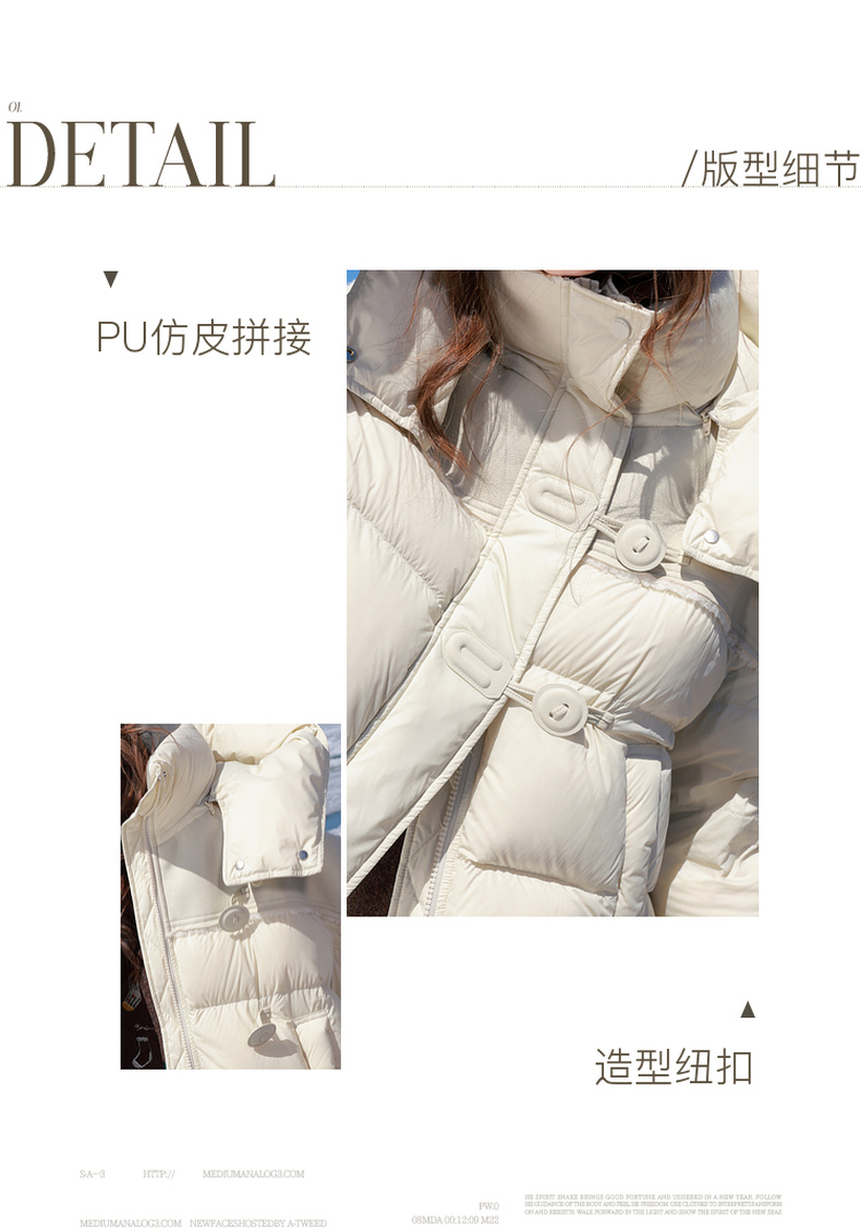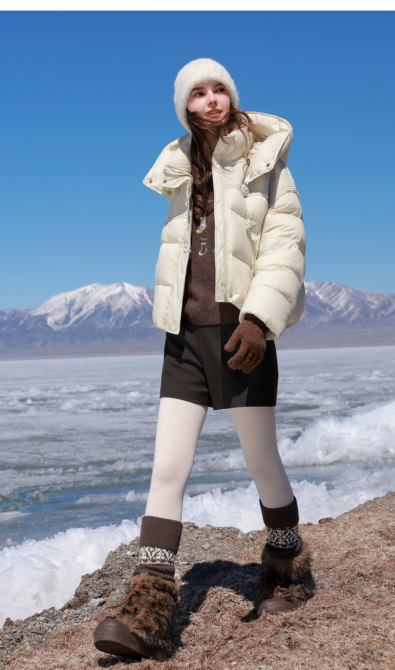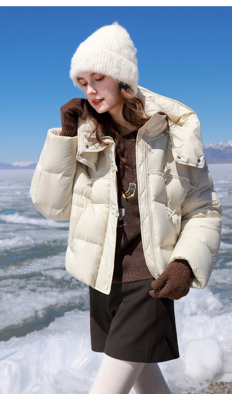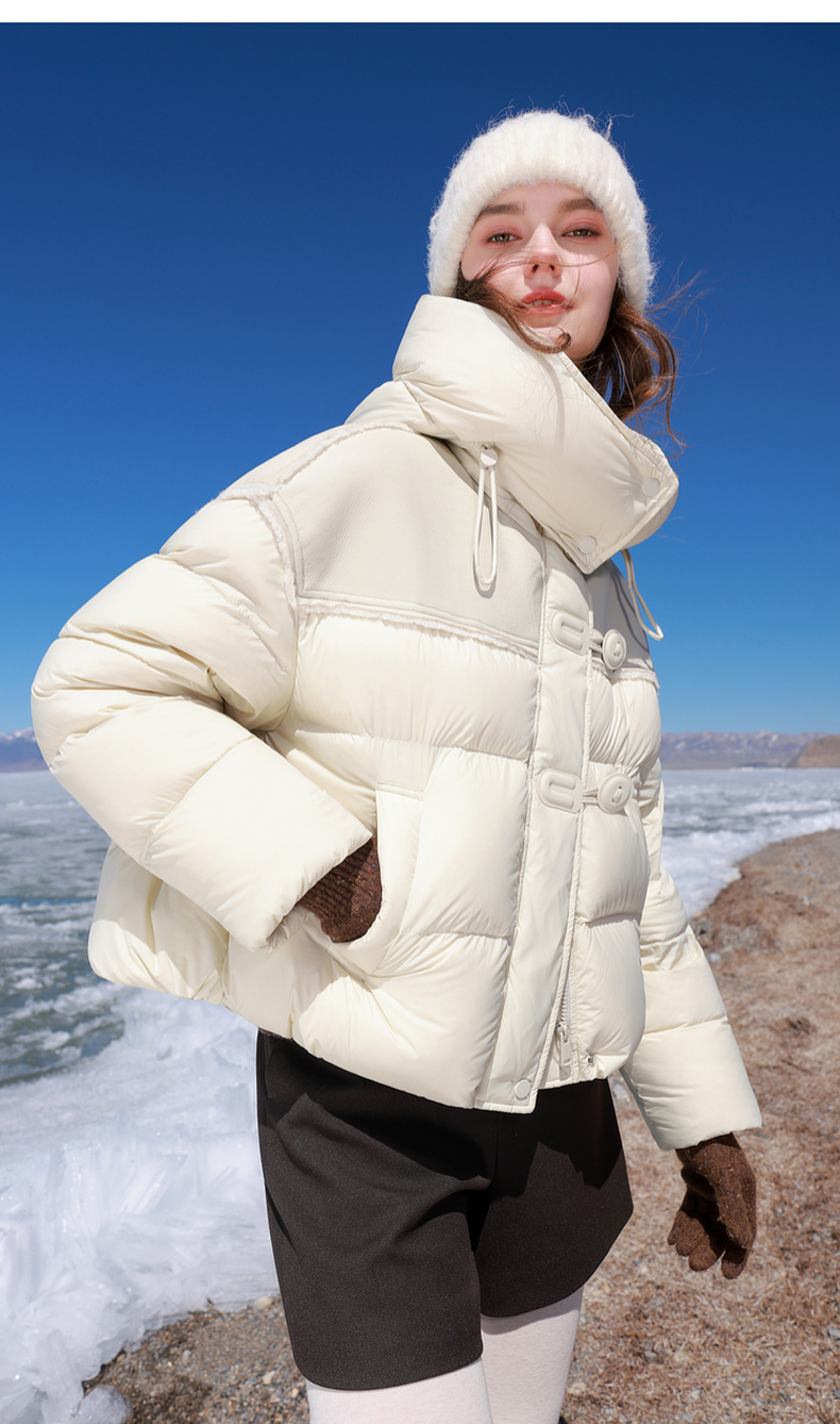 【防水易打理】三彩2025冬季新款90白鸭绒羽绒服短款宽松面包服M