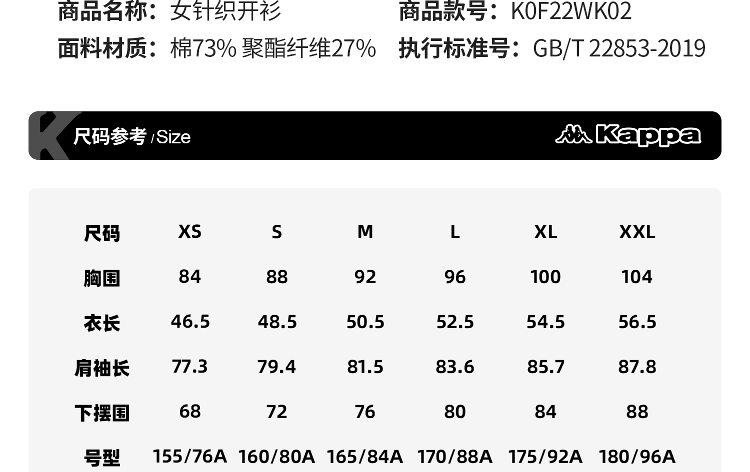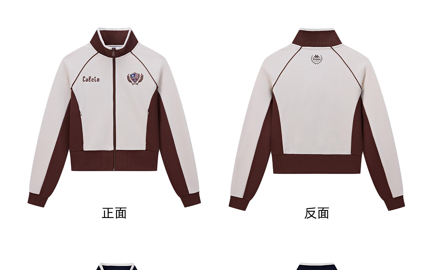 Kappa卡帕背靠背女款针织运动外套复古休闲开衫夹克撞色立领上衣K0F22WK02