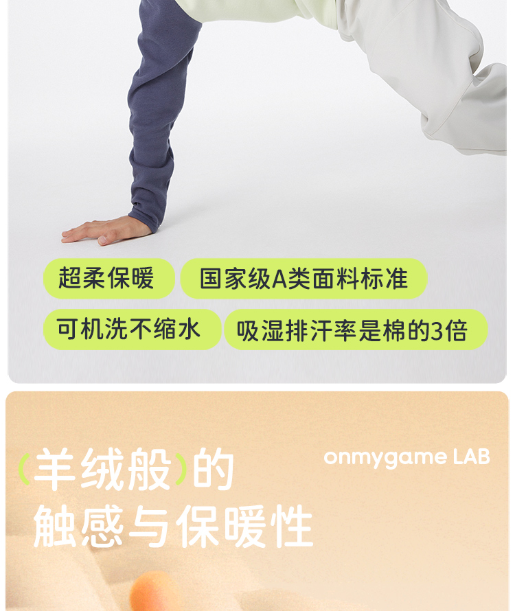 onmygame儿童专业运动品牌男女童款耐脏不易皱,柔软但不软踏