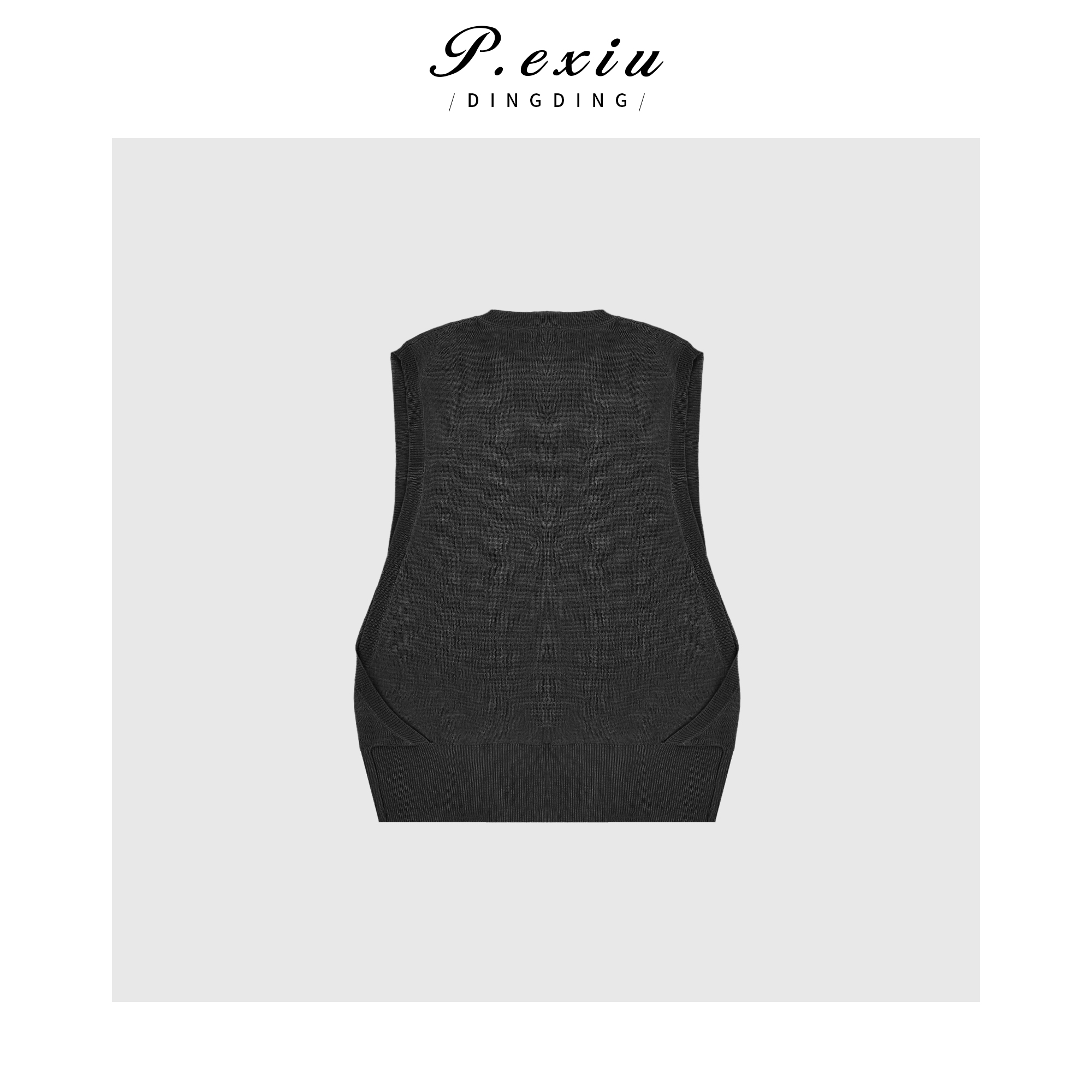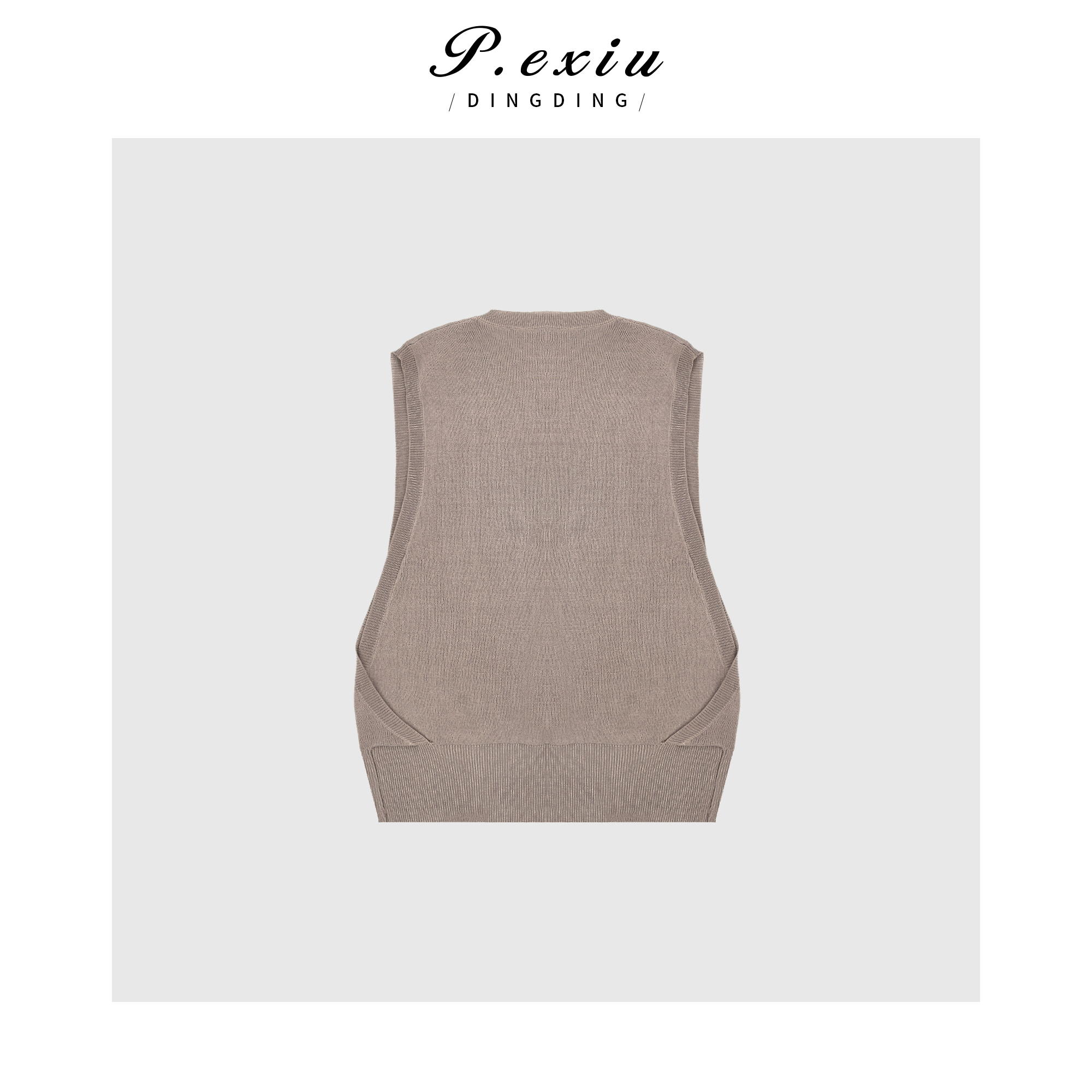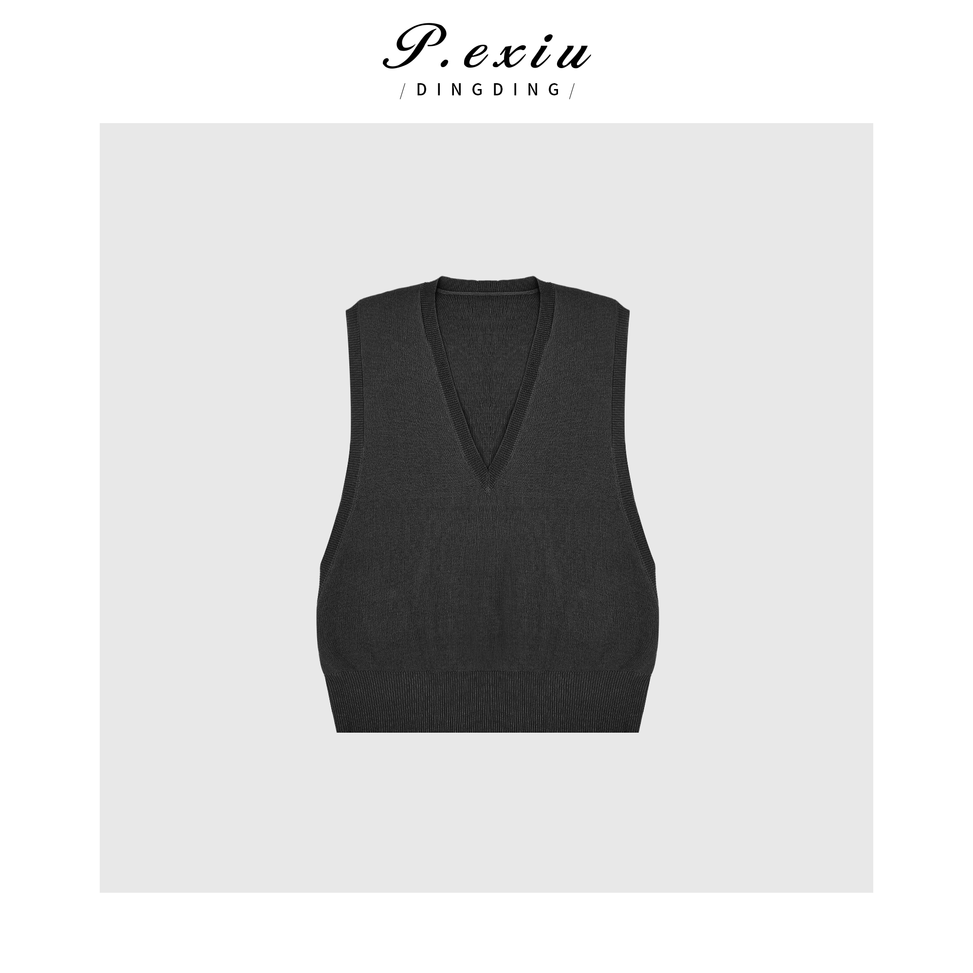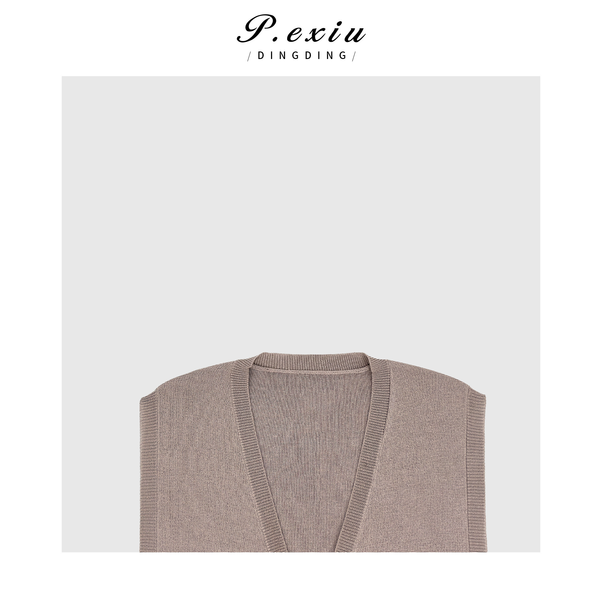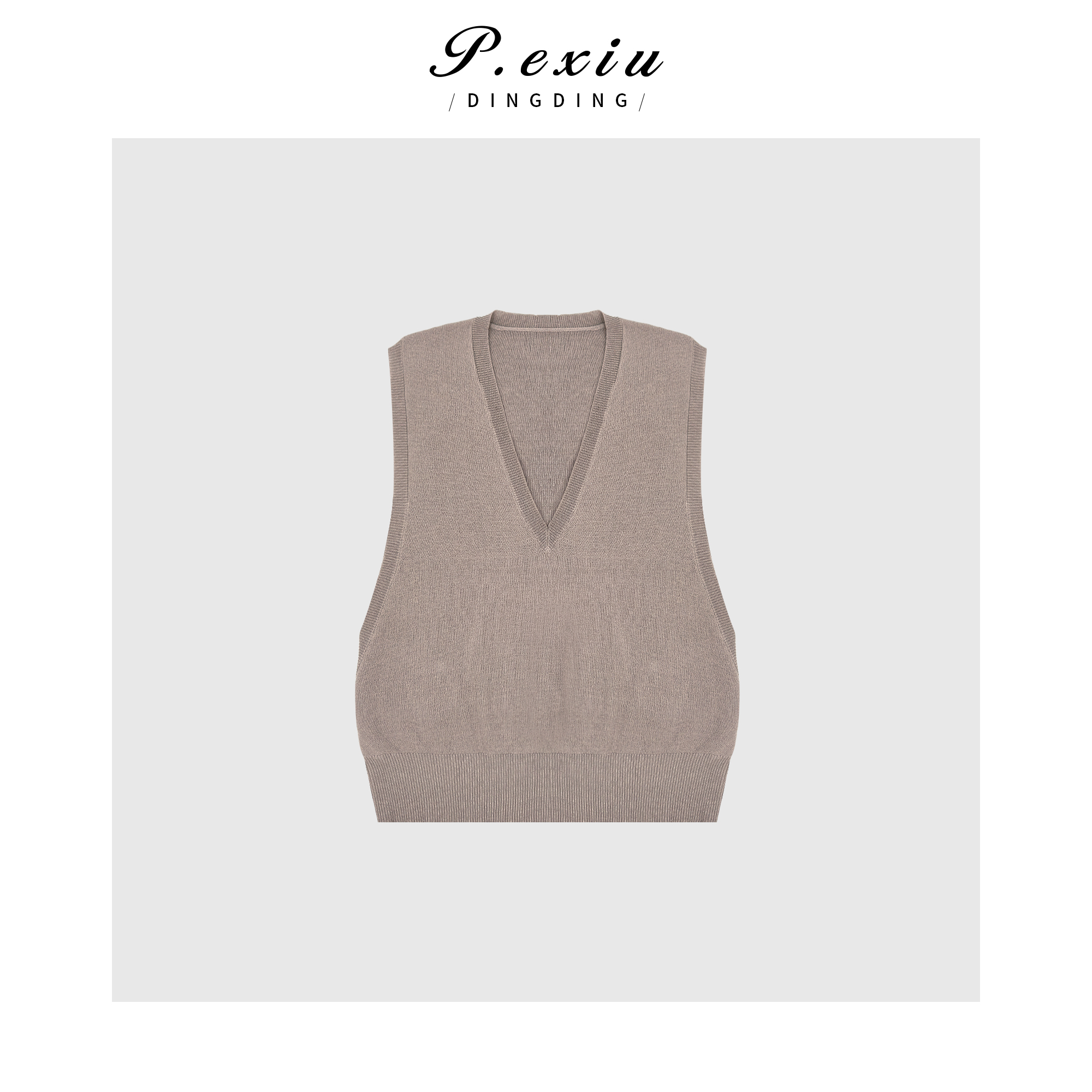 04-3潘依绣丁丁宠粉PanYiXiu/潘依绣人丝学院风叠穿外搭V领针织背心 ZZ0513