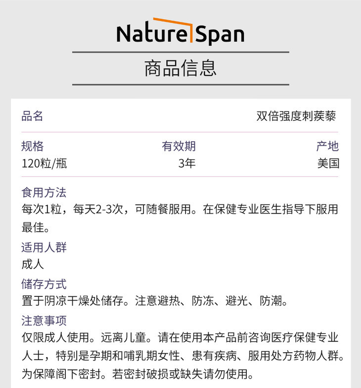 刺蒺藜美国原装进口胶囊120粒 NATURESPAN倍能适
