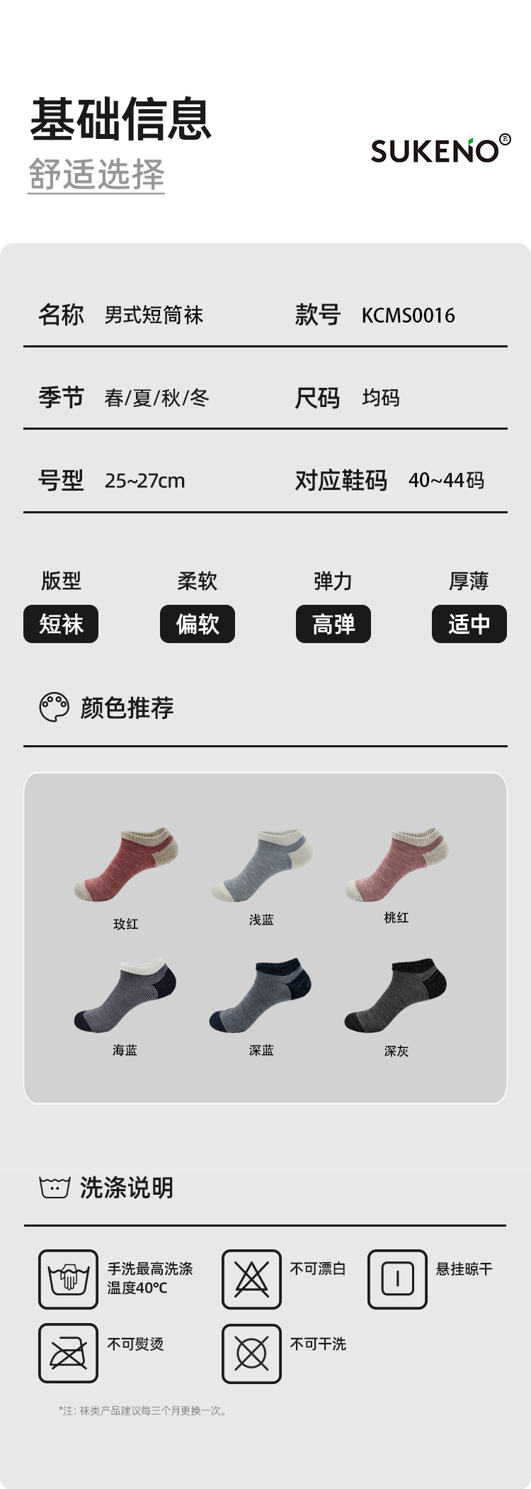 SUKENO夏季薄款低帮男袜日式舒适休闲短袜