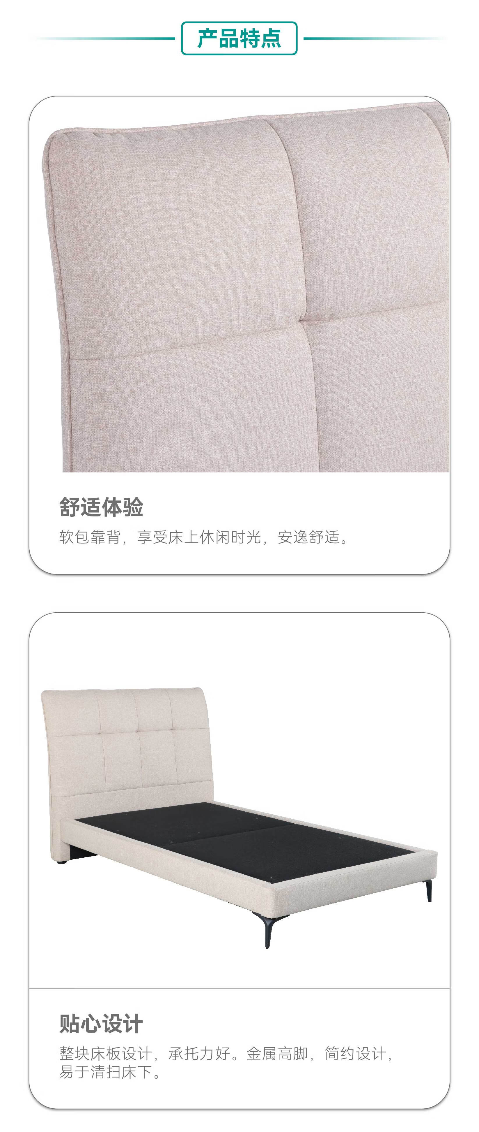 【家具】卧室简约软包布艺床伊娜2