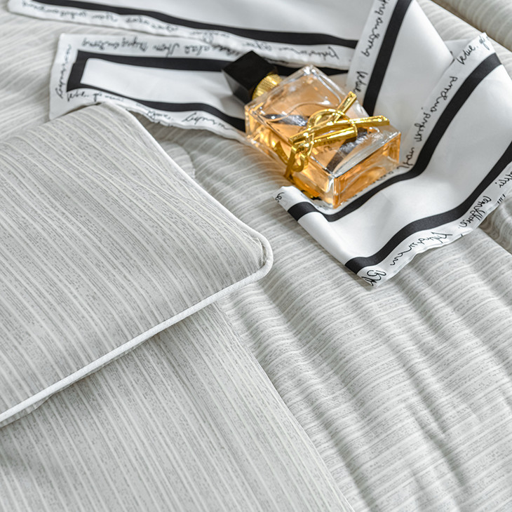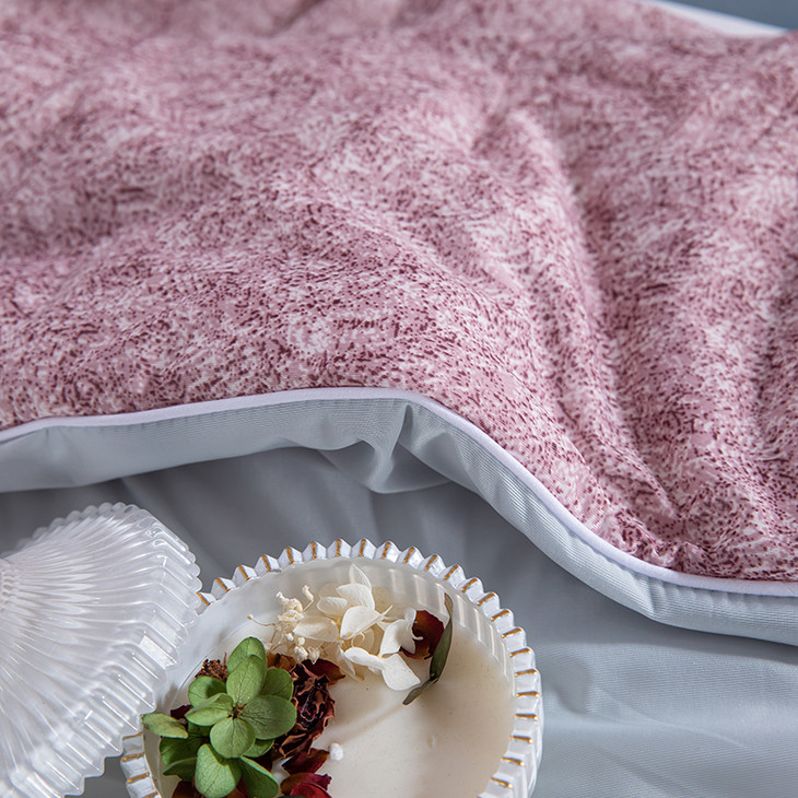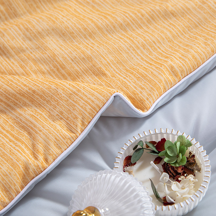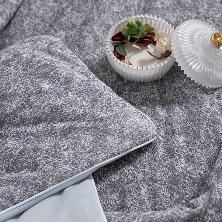 整张羽丝绒填充,像盖在身上的小空调,可以整被机洗解放双手,不起褶皱,不结团,不起球,柔滑被面细节工整。