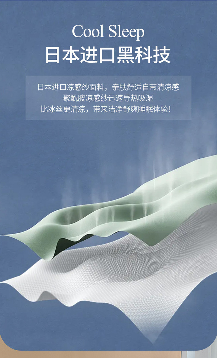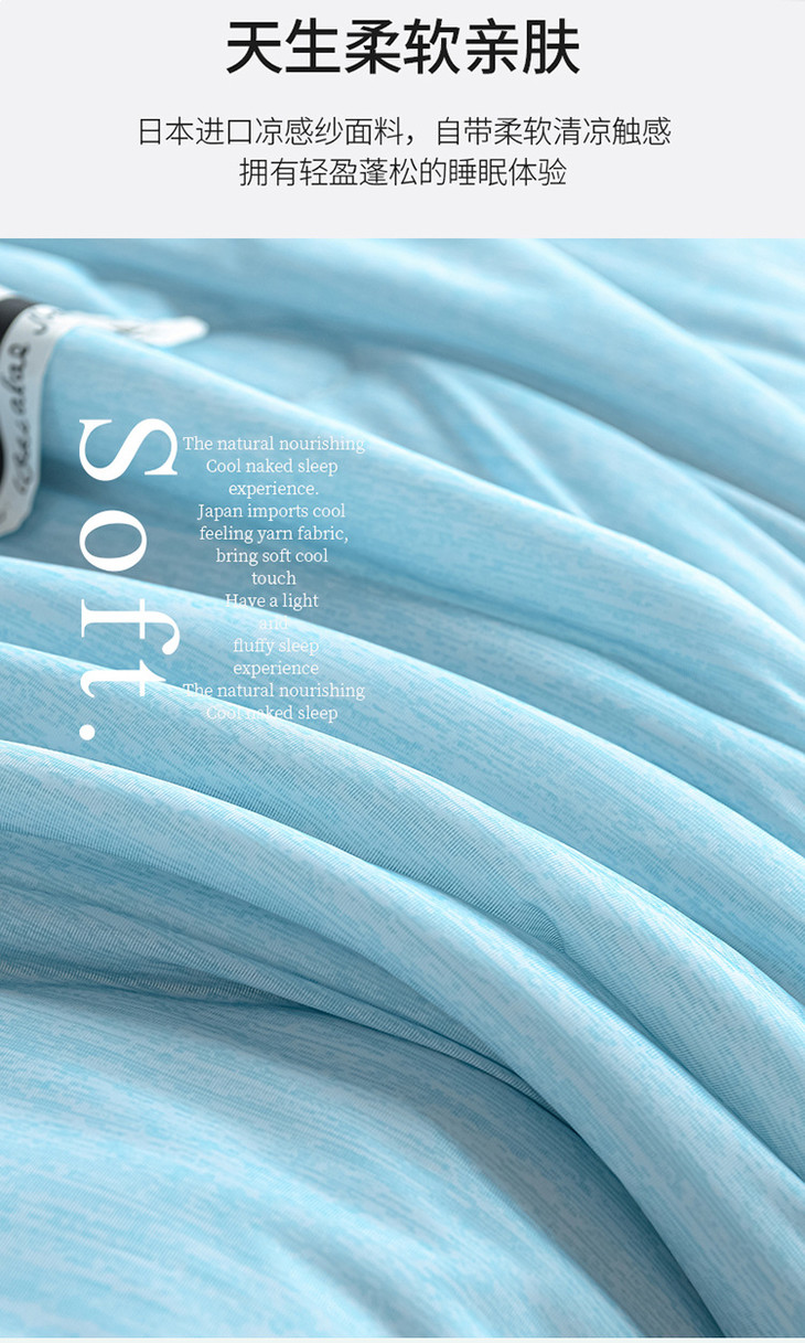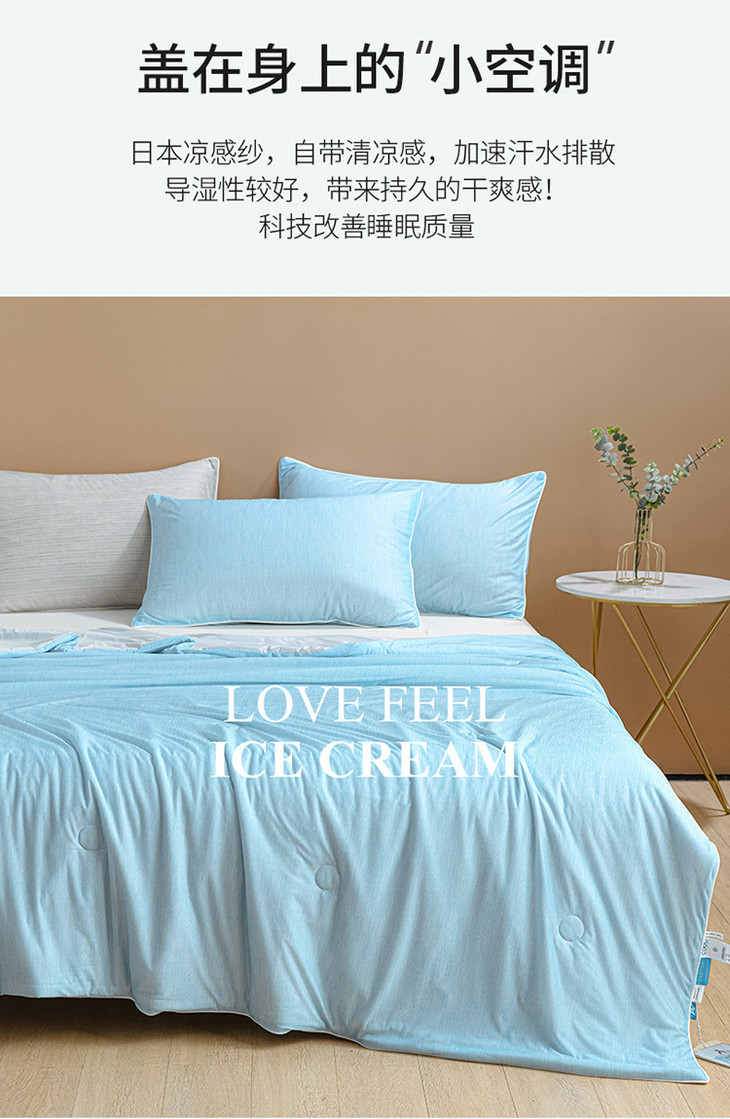 【推荐理由】A类母婴级面料,日本进口黑科技凉感纱面料,实测凉感检测值0.28 ,亲肤舒适自带凉感,聚酰胺凉感纱迅速导热吸湿,比冰丝更清凉的冰激凌被~