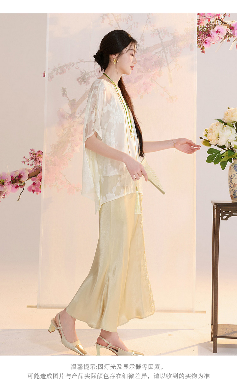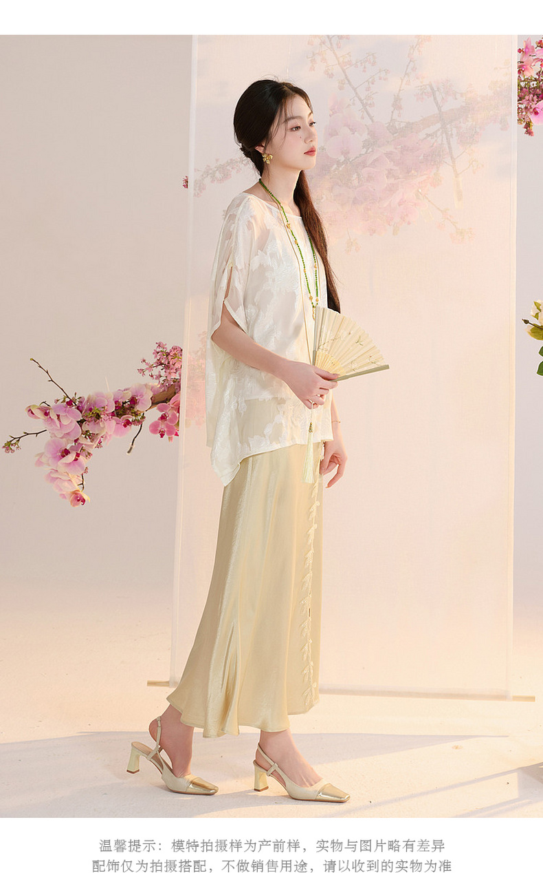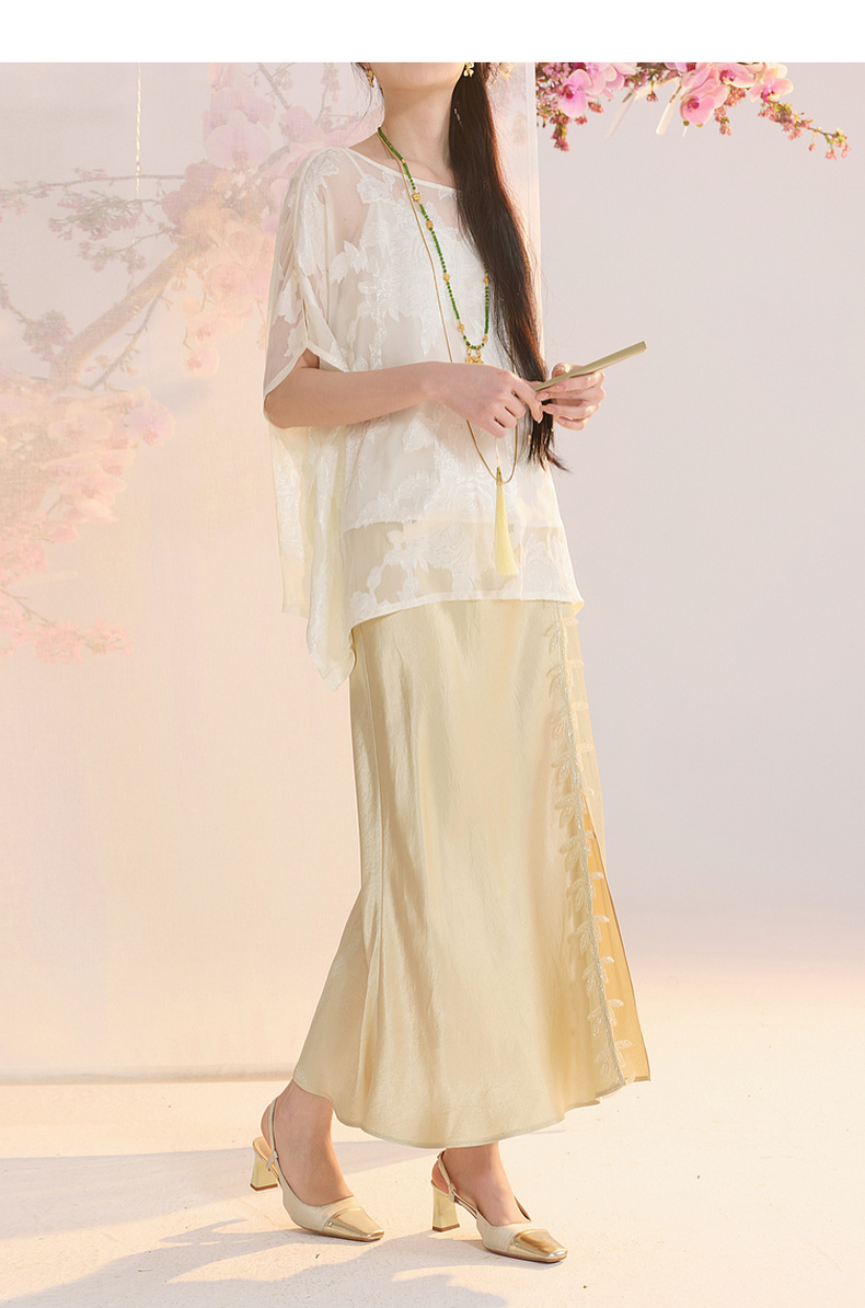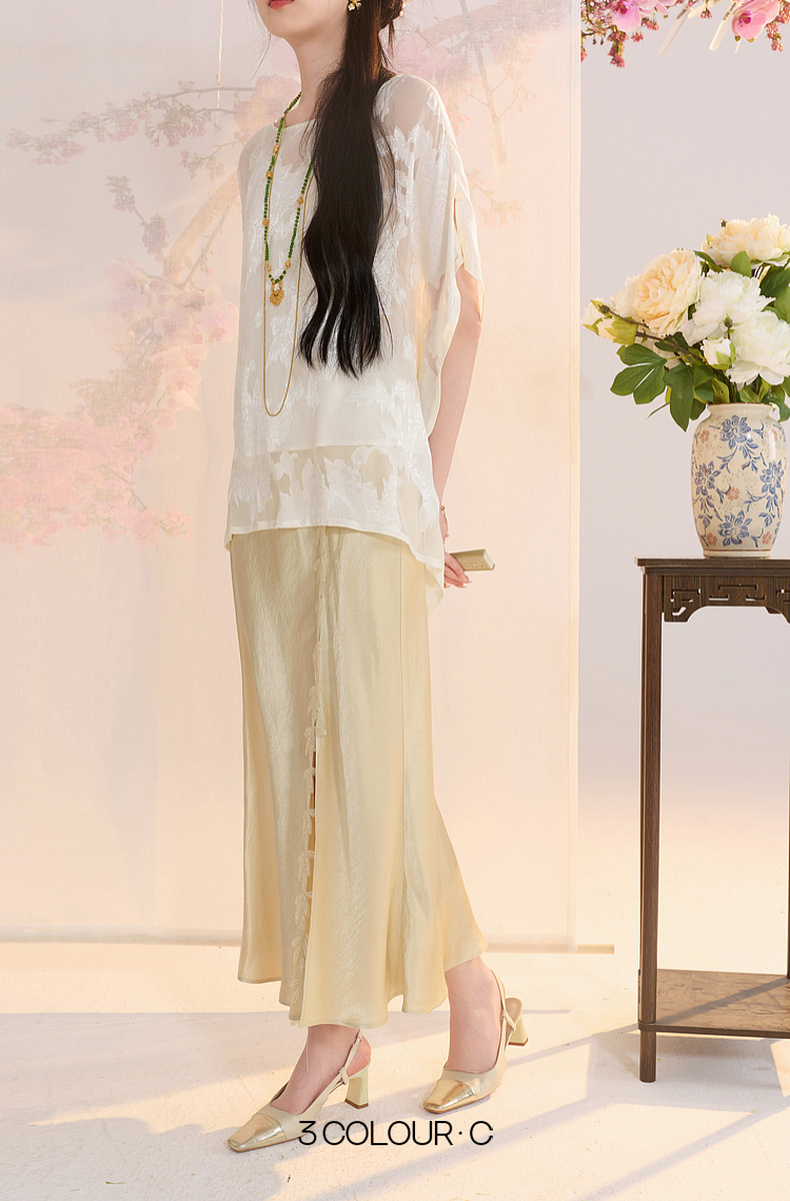 三彩【花颜辞镜】2026夏季新款新中式醋酸半身裙鱼尾裙高腰长裙C