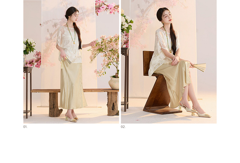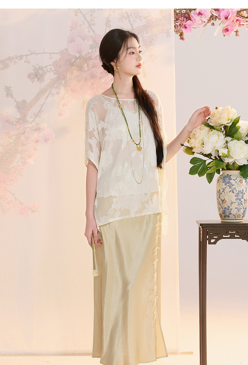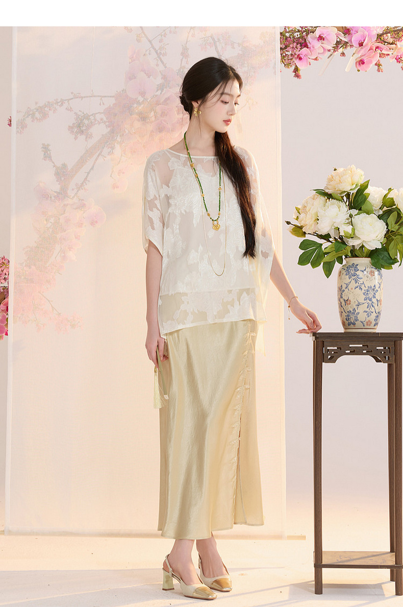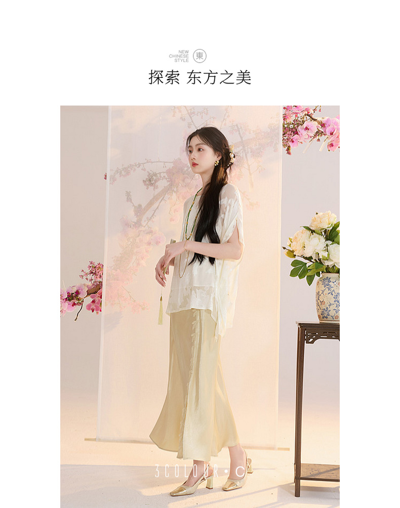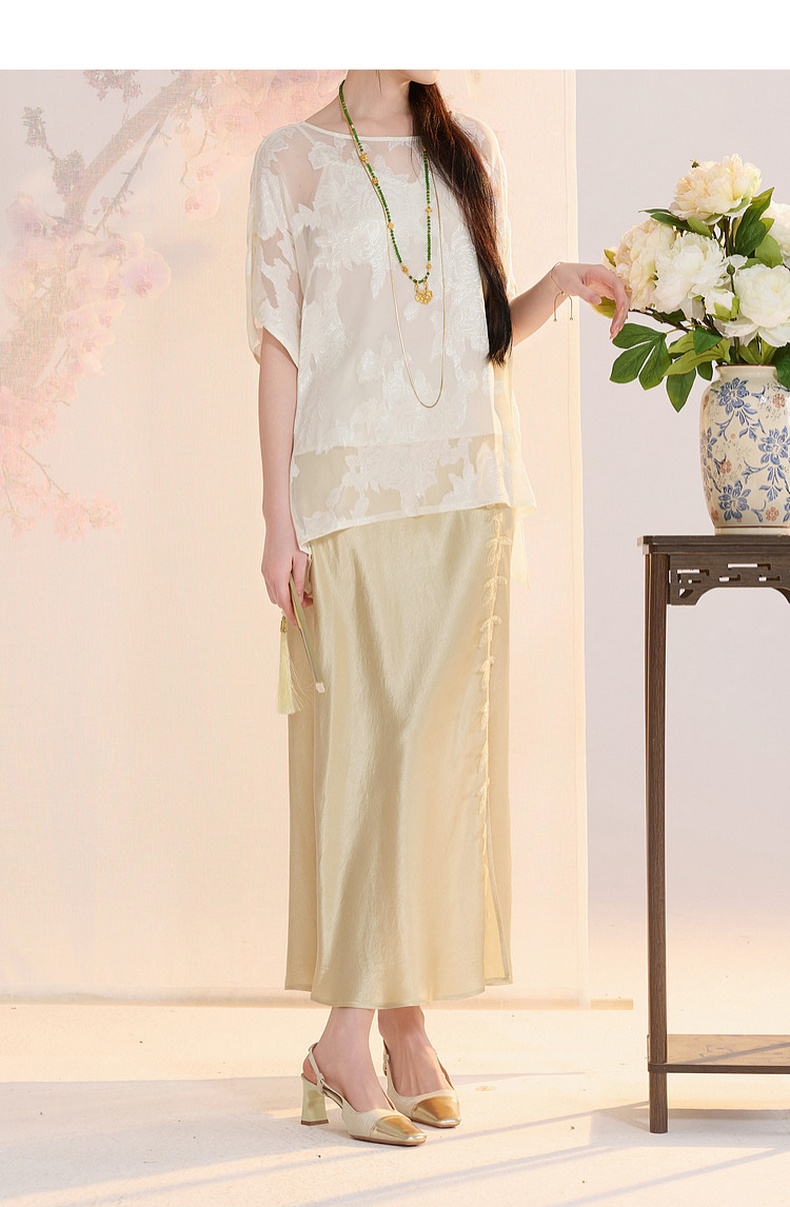 三彩【花颜辞镜】2026夏季新款新中式醋酸半身裙鱼尾裙高腰长裙C