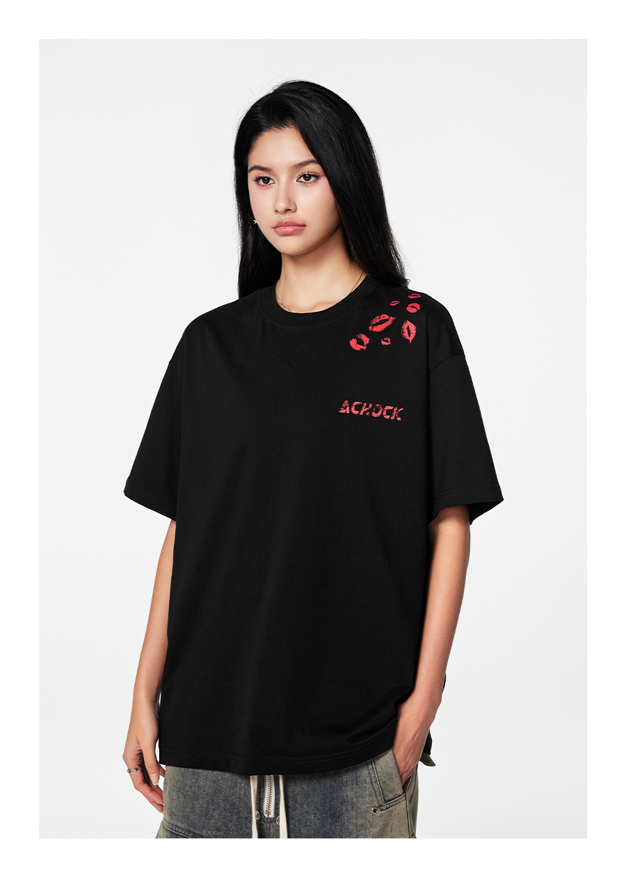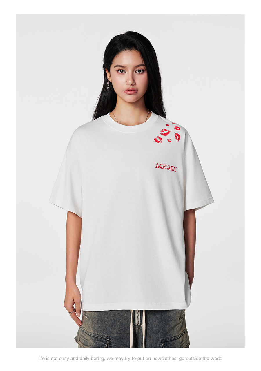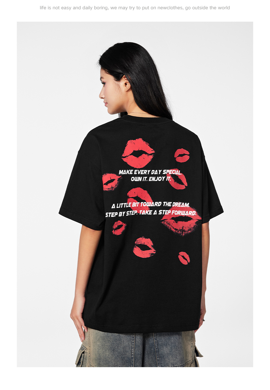 【Achock官方店】潮牌街头唇印标语印花圆领短袖夏季新款半袖T恤