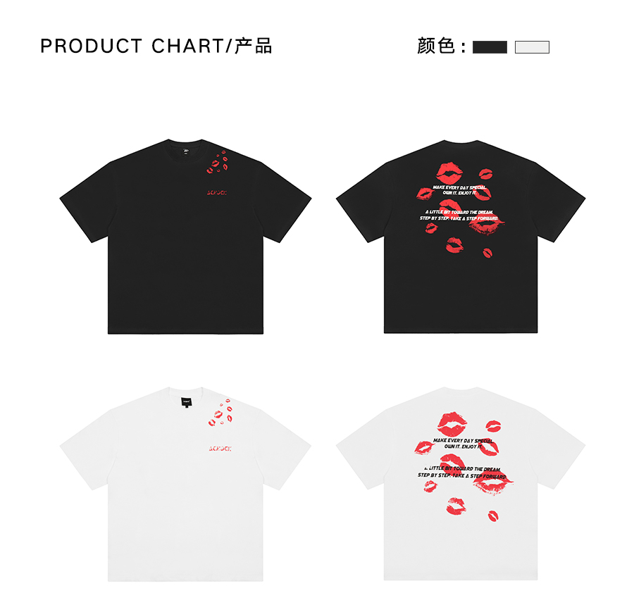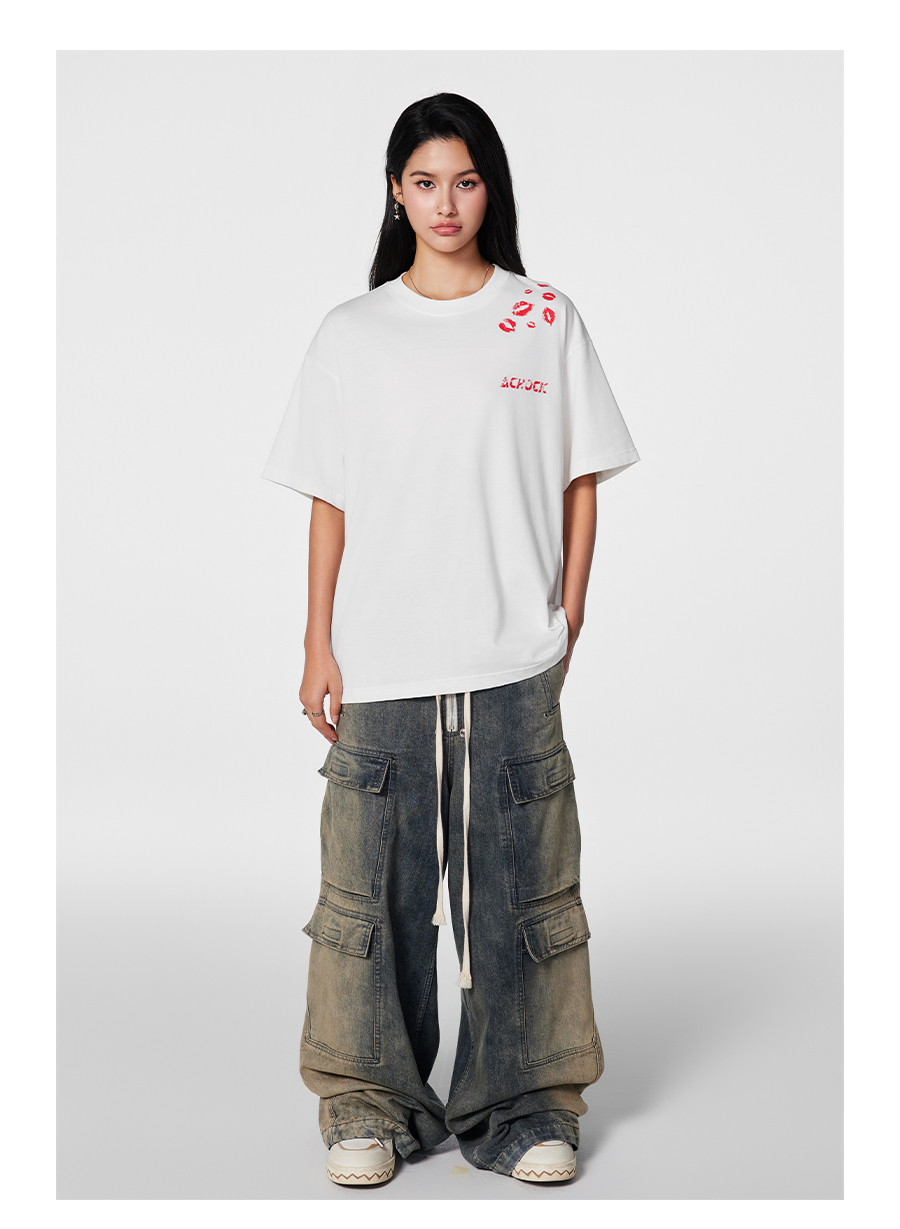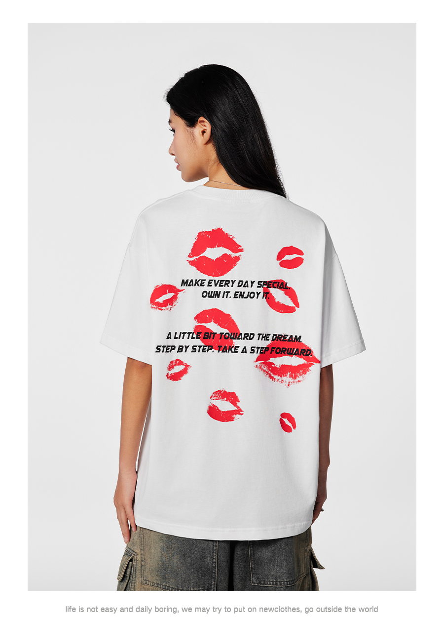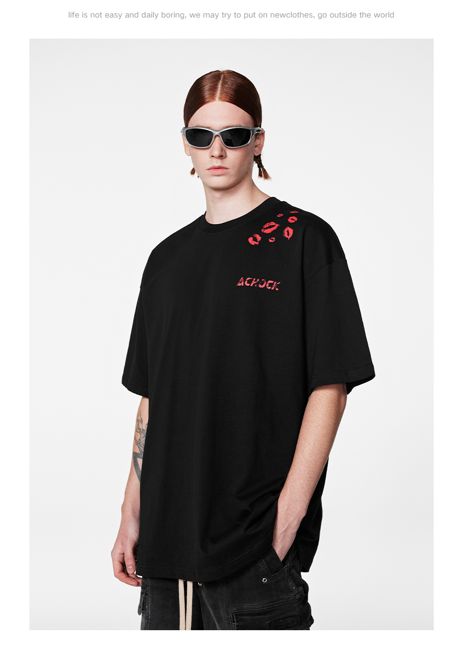 【Achock官方店】潮牌街头唇印标语印花圆领短袖夏季新款半袖T恤