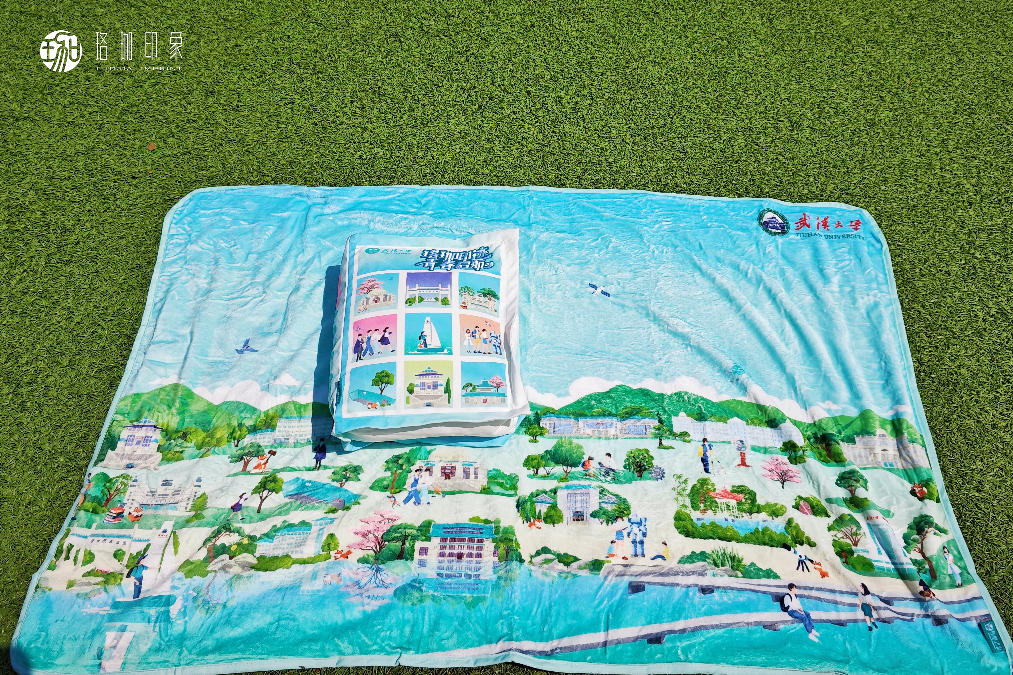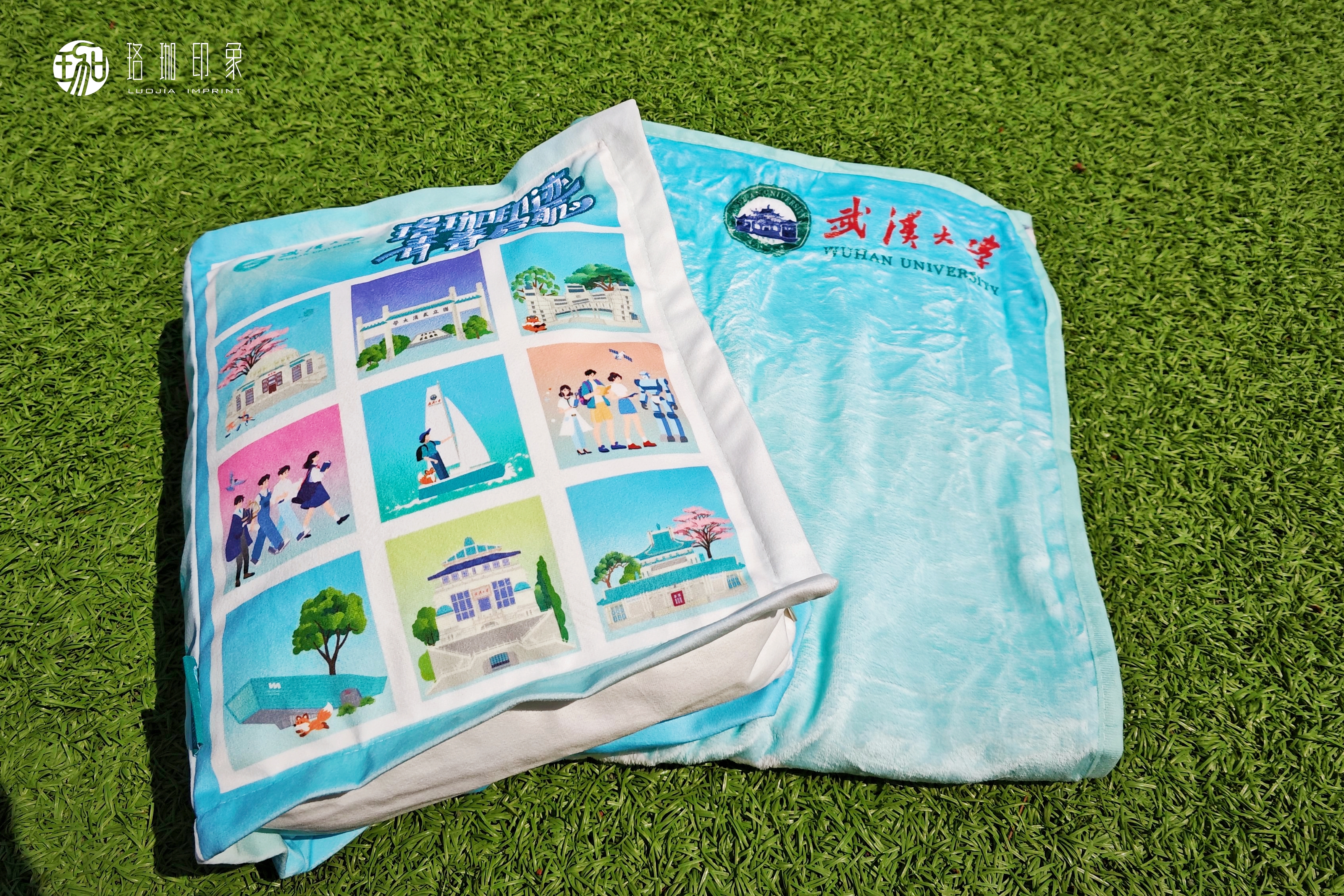 立体书造型抱枕,九宫格建筑图案,定格你的青春色彩!拉开侧链展开六大学科全景校园图毯子,软软绒绒又温暖,拥抱你的校园时光。