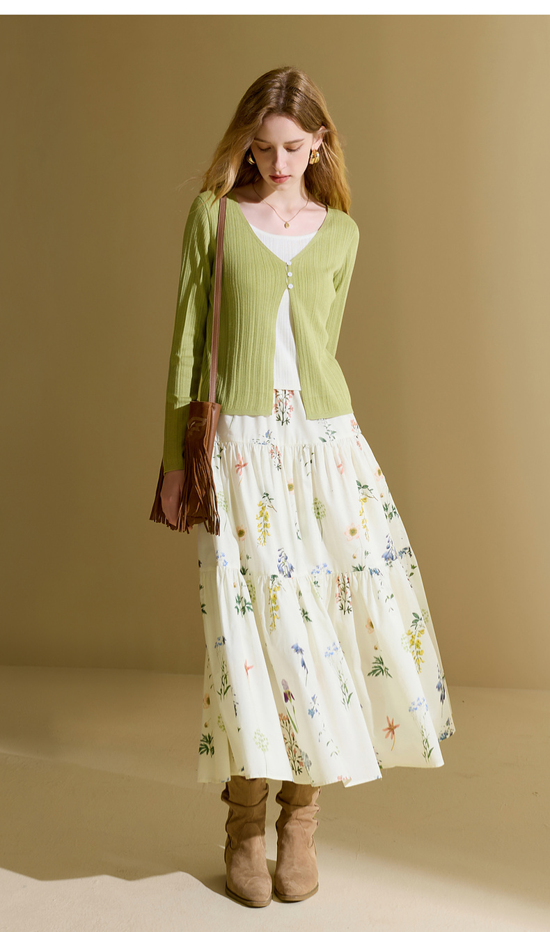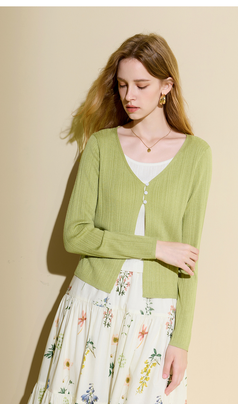 三彩2025秋季新款假两件针织衫显瘦长袖撞色毛衫上衣设计感M