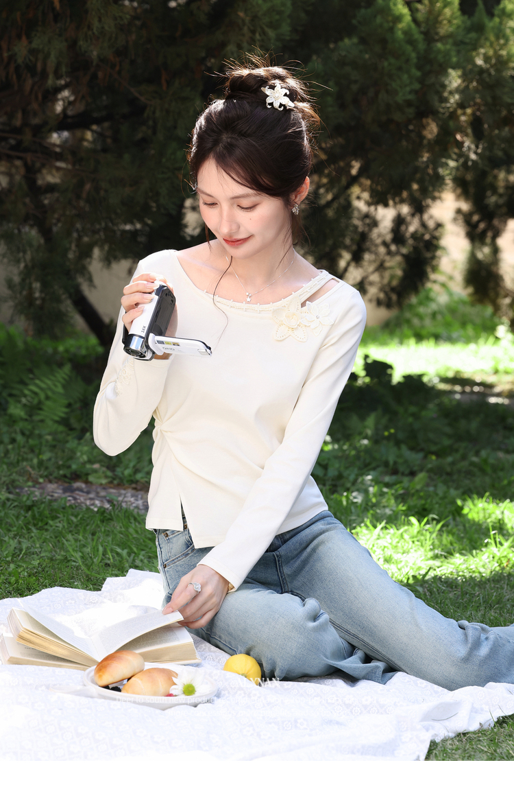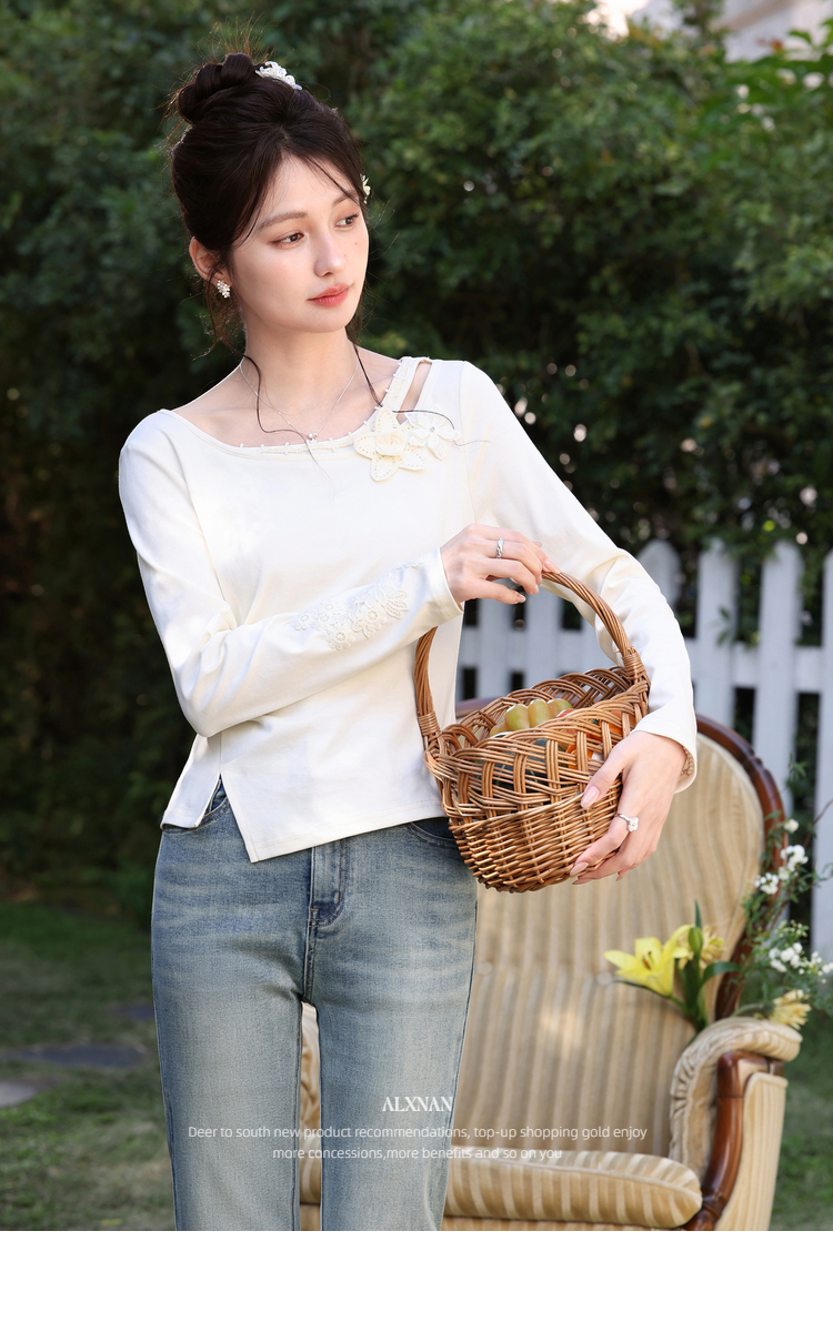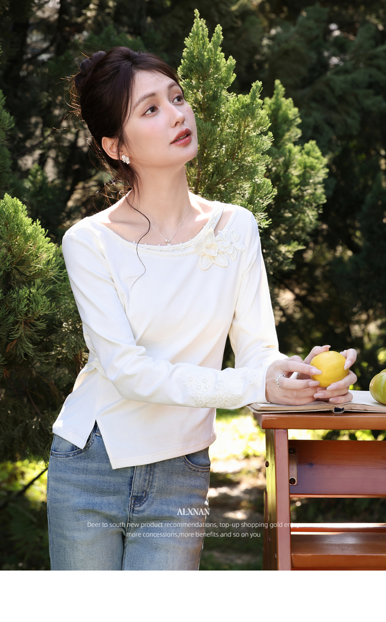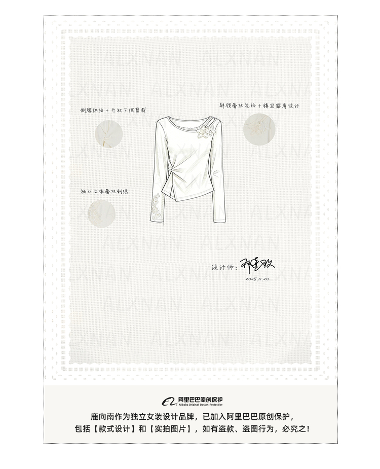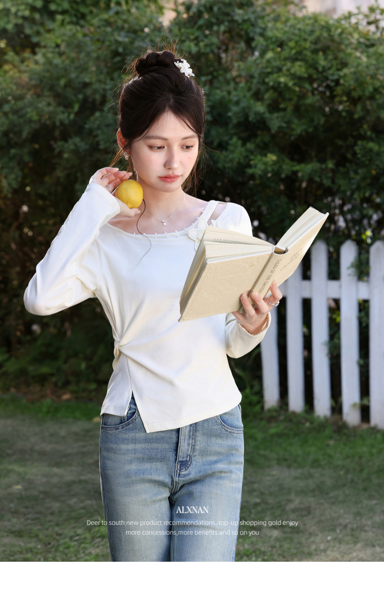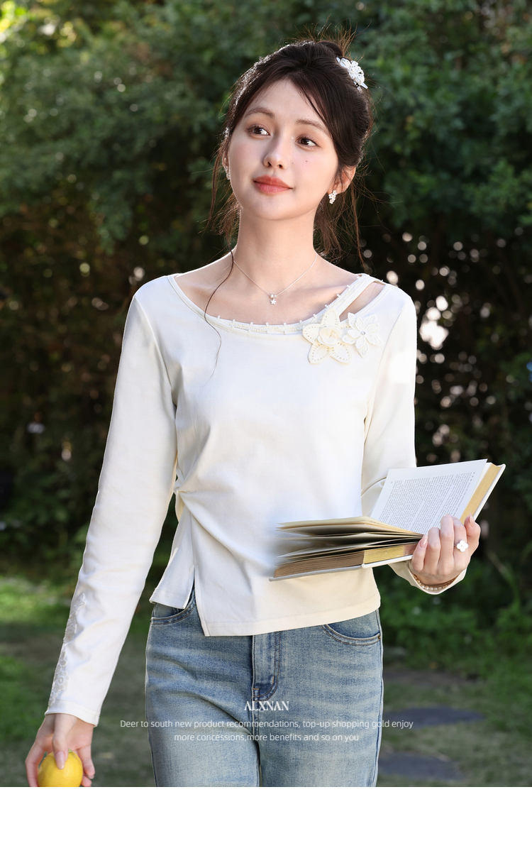 鹿向南「茉影扶光」不规则设计感长袖t恤女春季新款杏色打底上衣