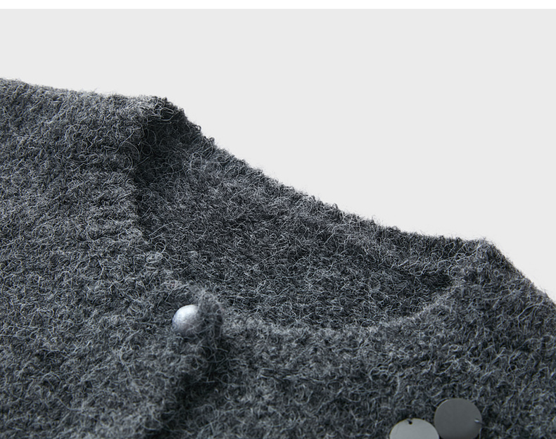 三彩2025冬季新款复古慵懒针织衫宽松保暖珠片圆领开衫松弛感S