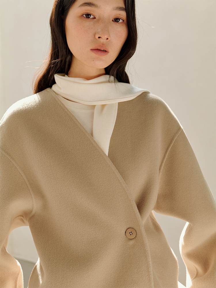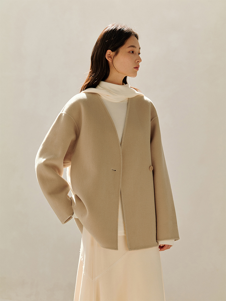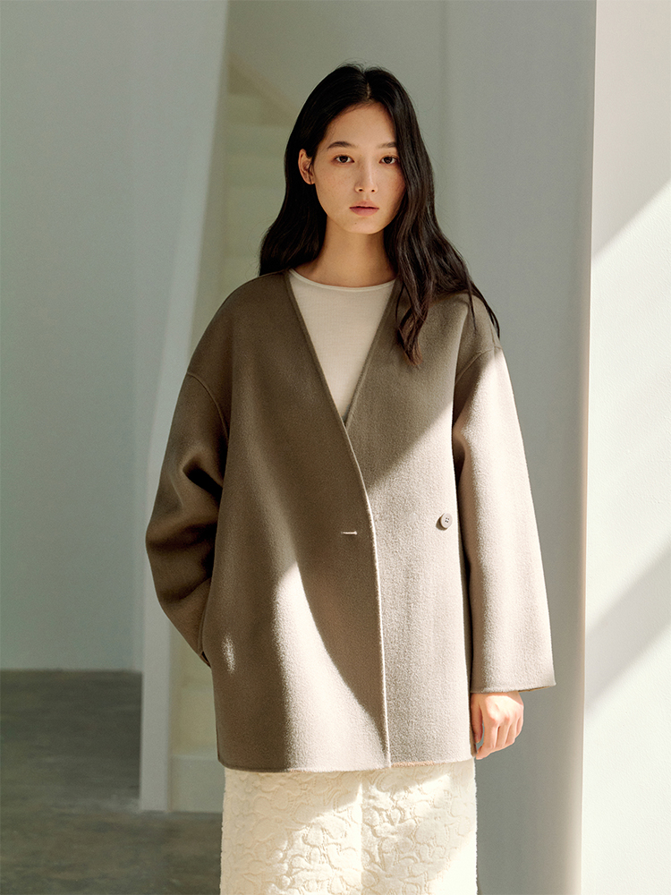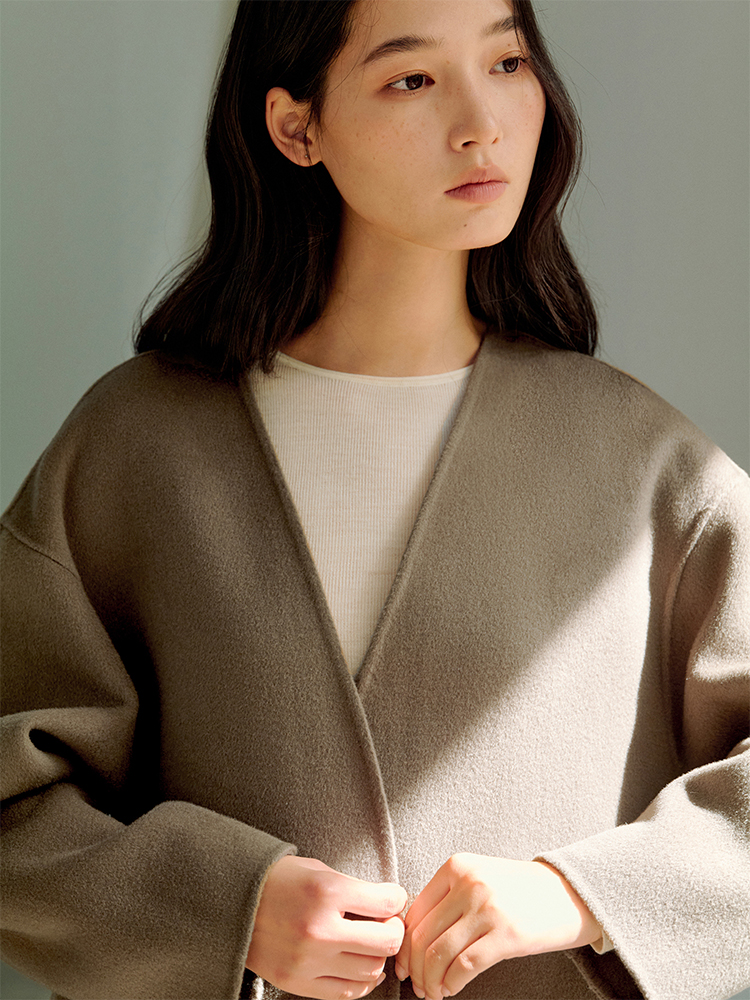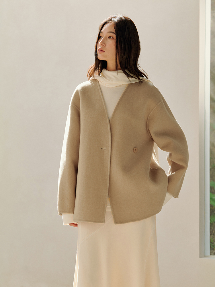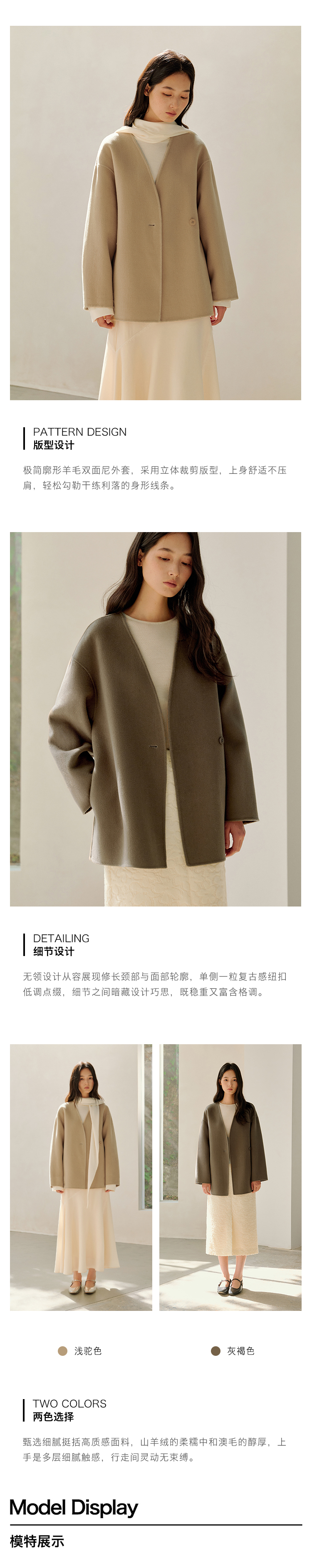 ForPoem 25/FW 原创设计极简V领双面呢澳毛大衣外套
