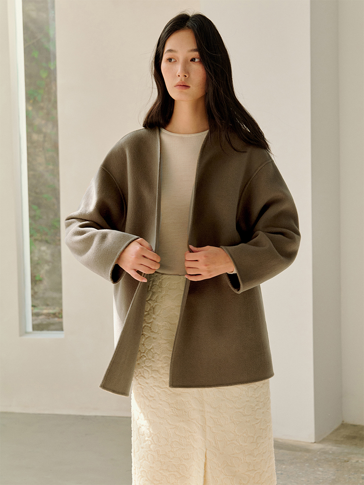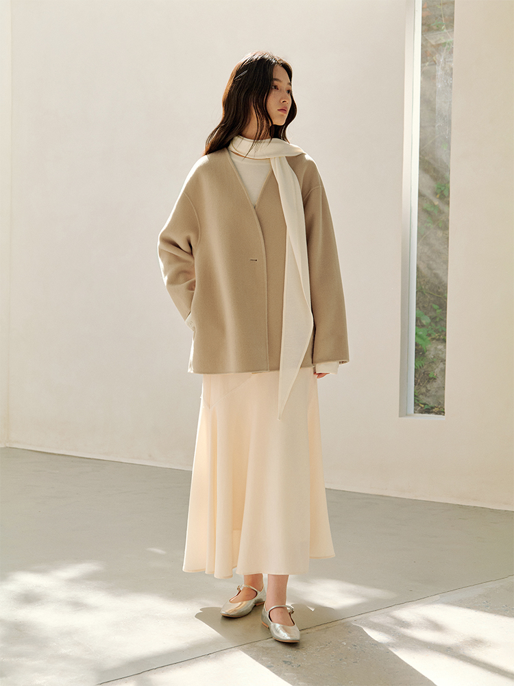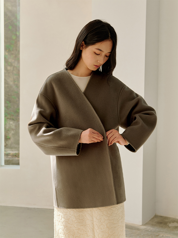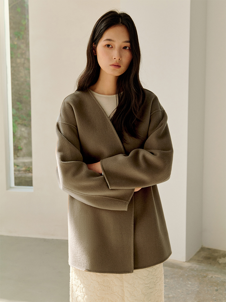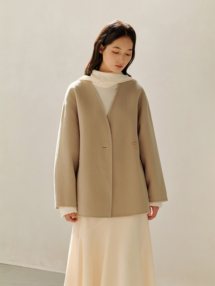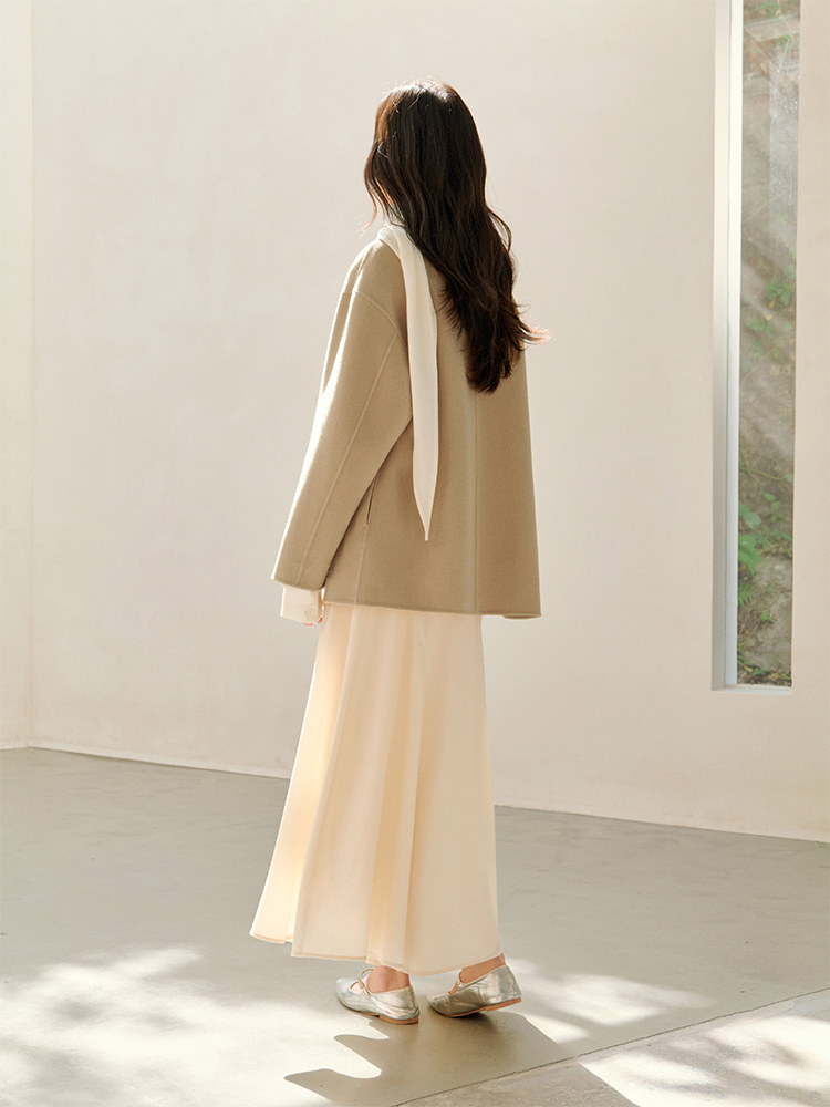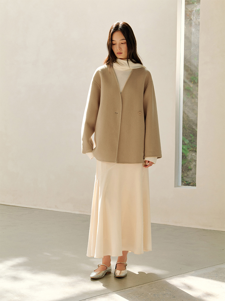 ForPoem 25/FW 原创设计极简V领双面呢澳毛大衣外套