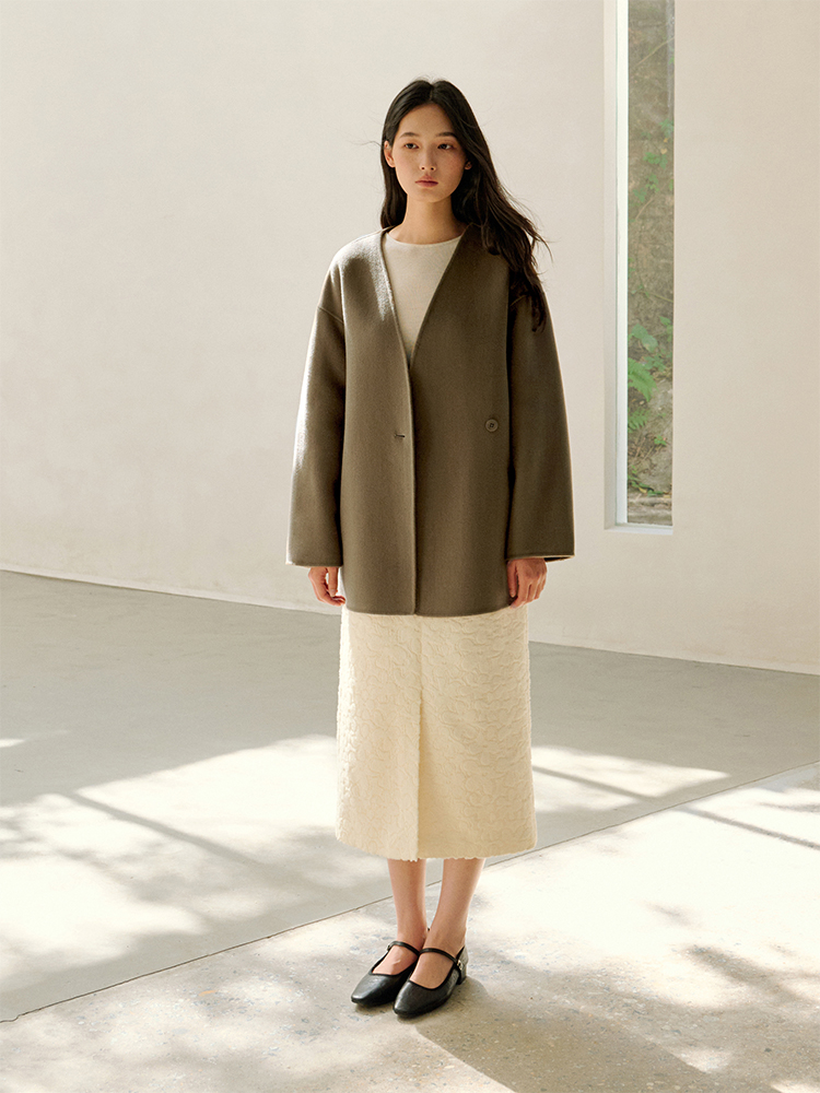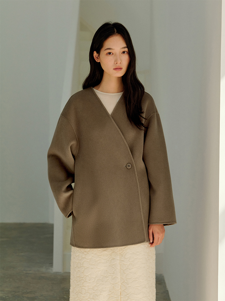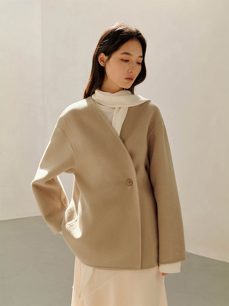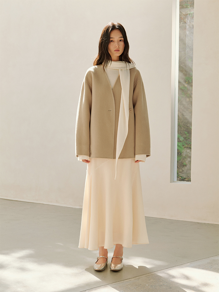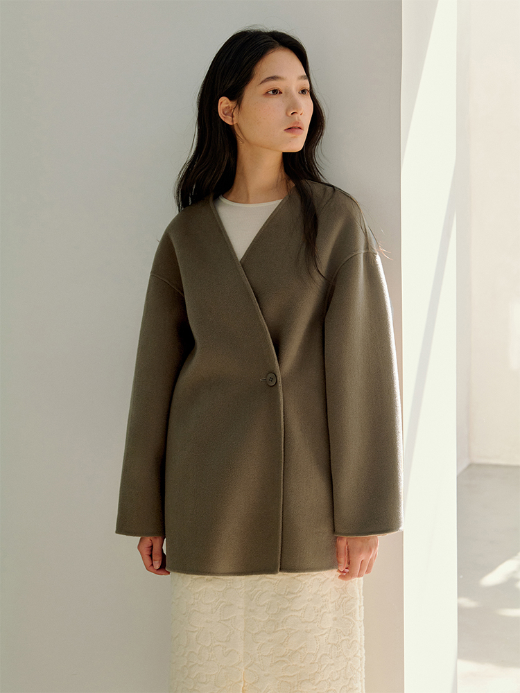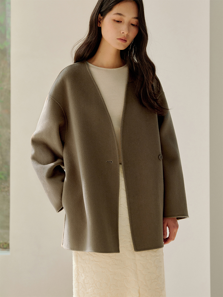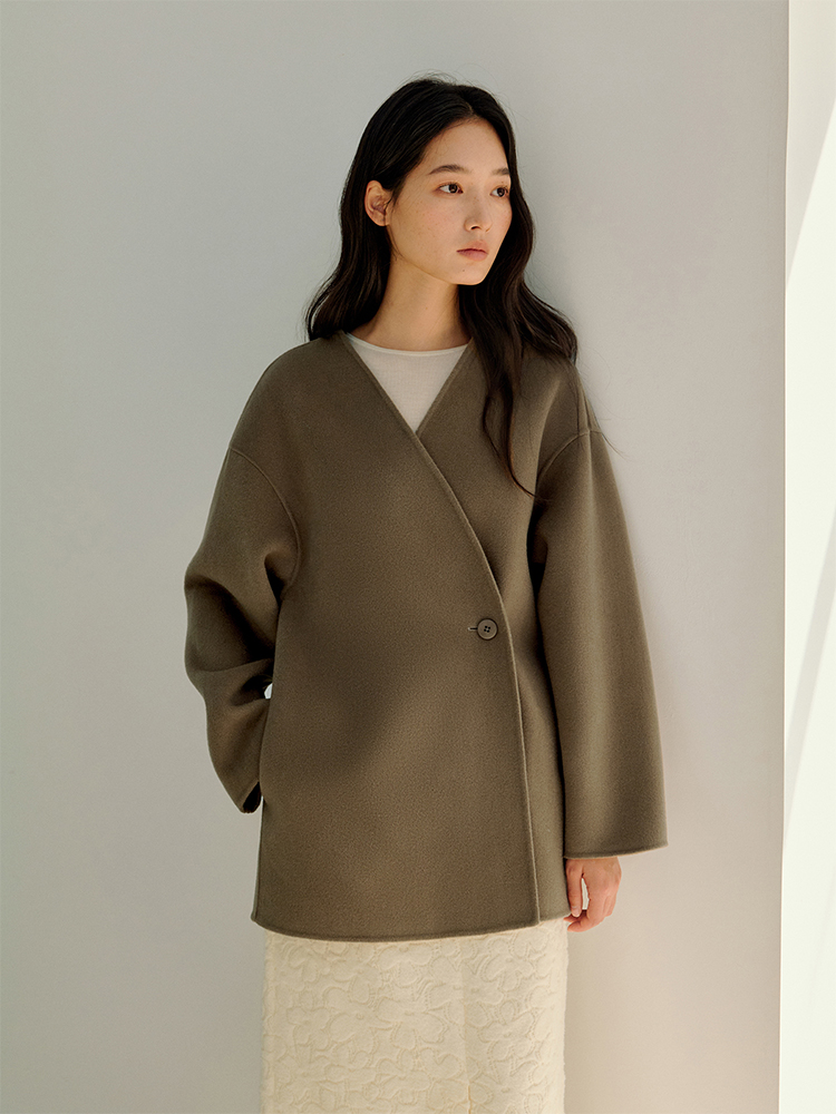 ForPoem 25/FW 原创设计极简V领双面呢澳毛大衣外套