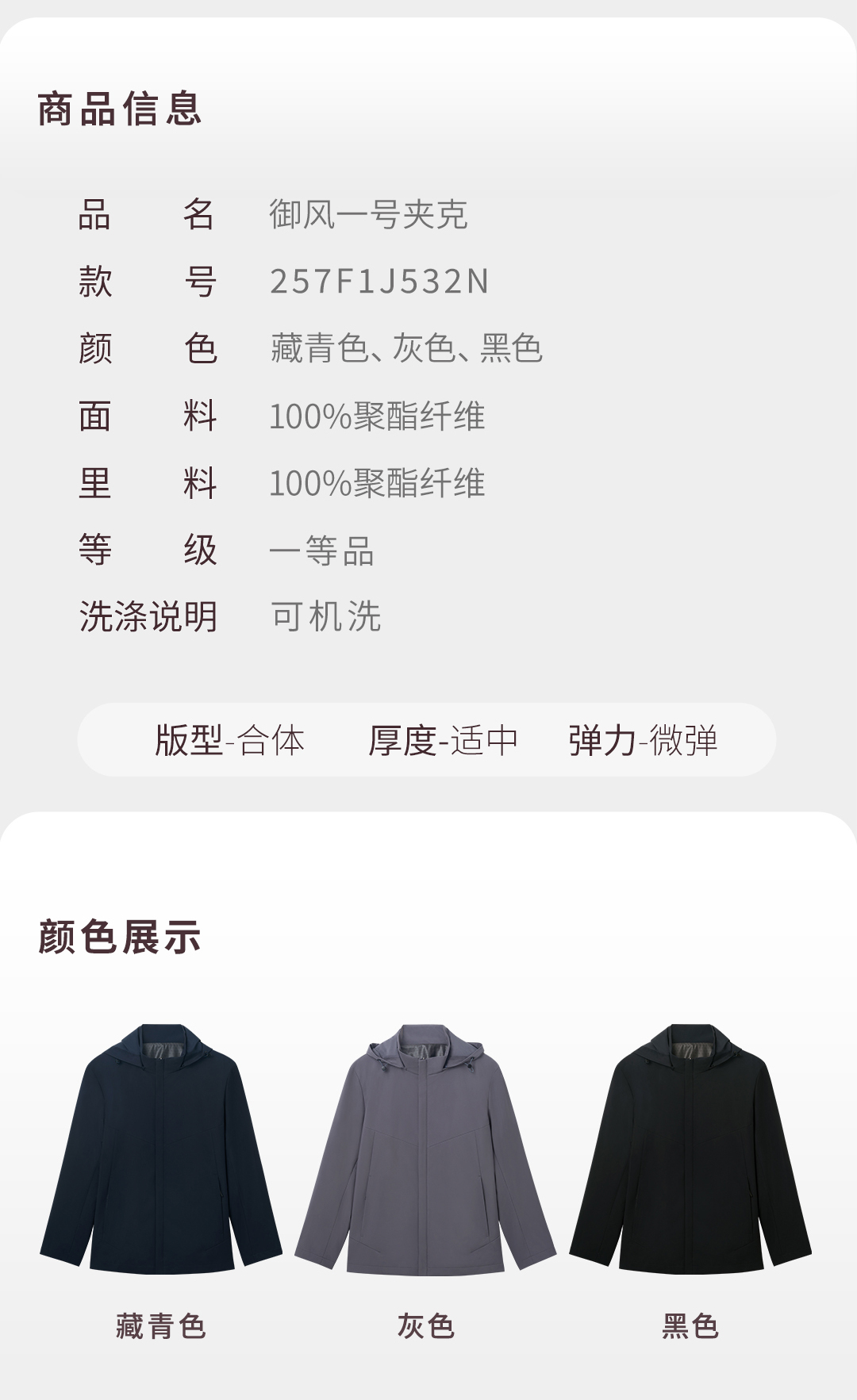 【风尚一号】防水四面弹抗皱翻领拒水防风防静电夹克外套257X1J529N