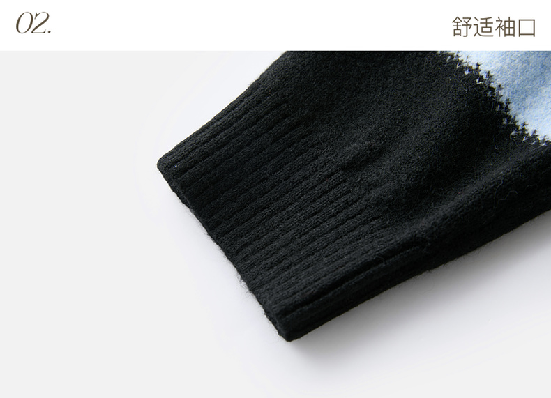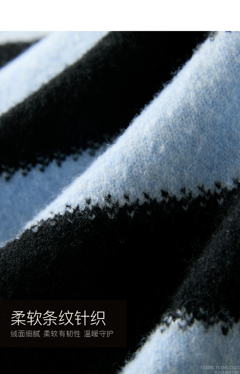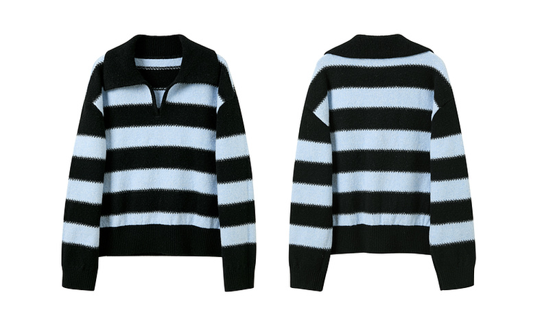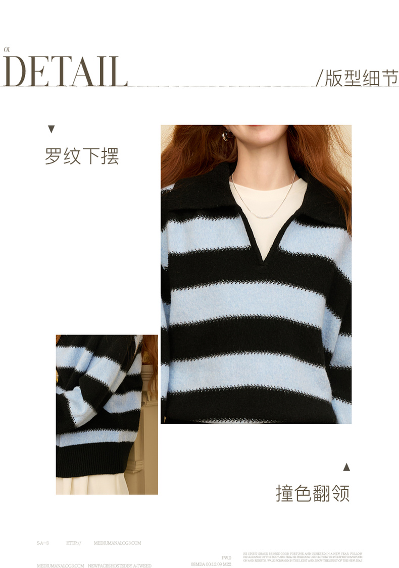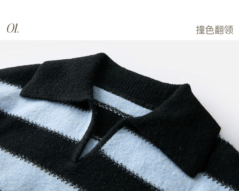 三彩2025冬季新款撞色翻领条纹针织衫套头毛衫休闲慵懒风宽松M